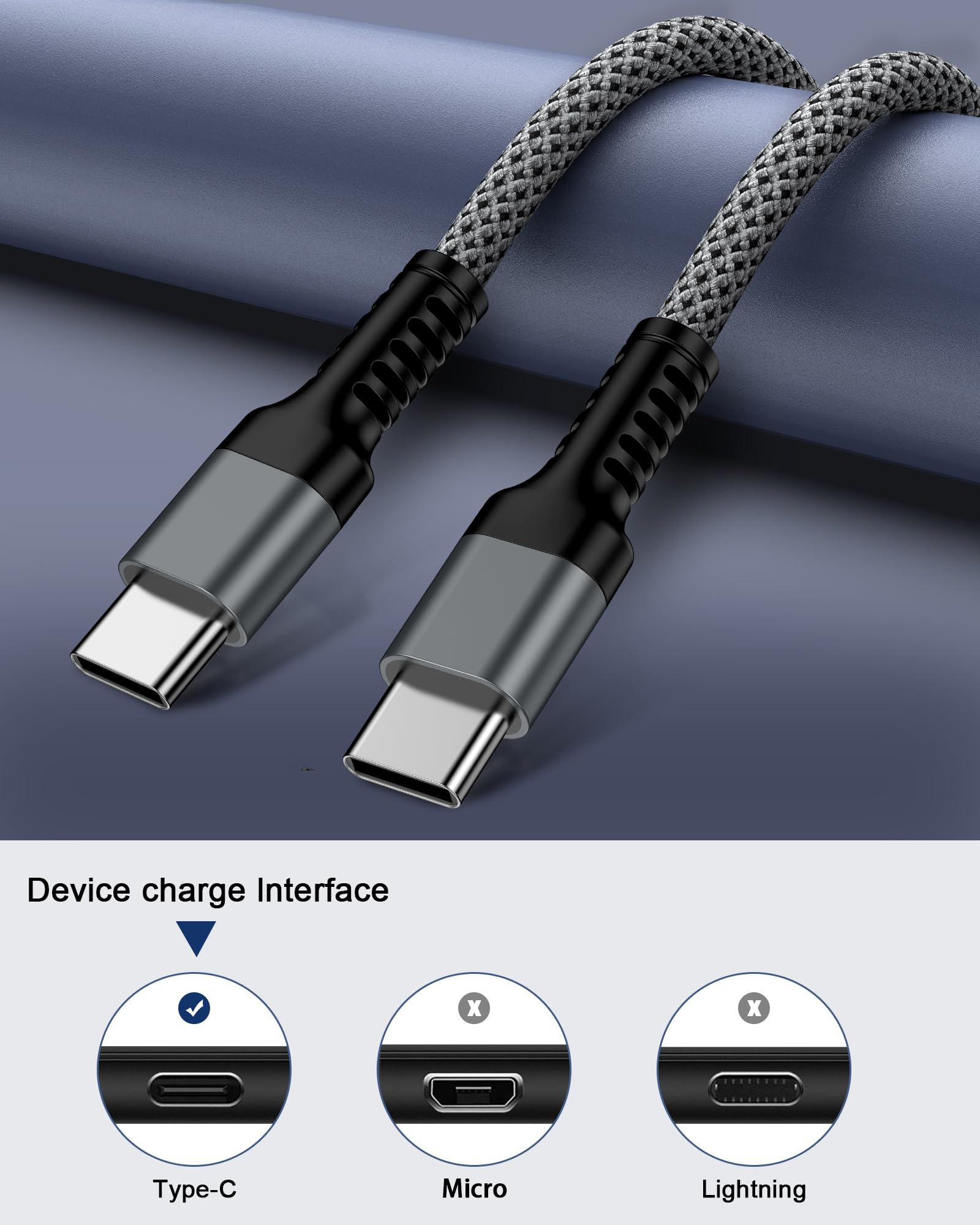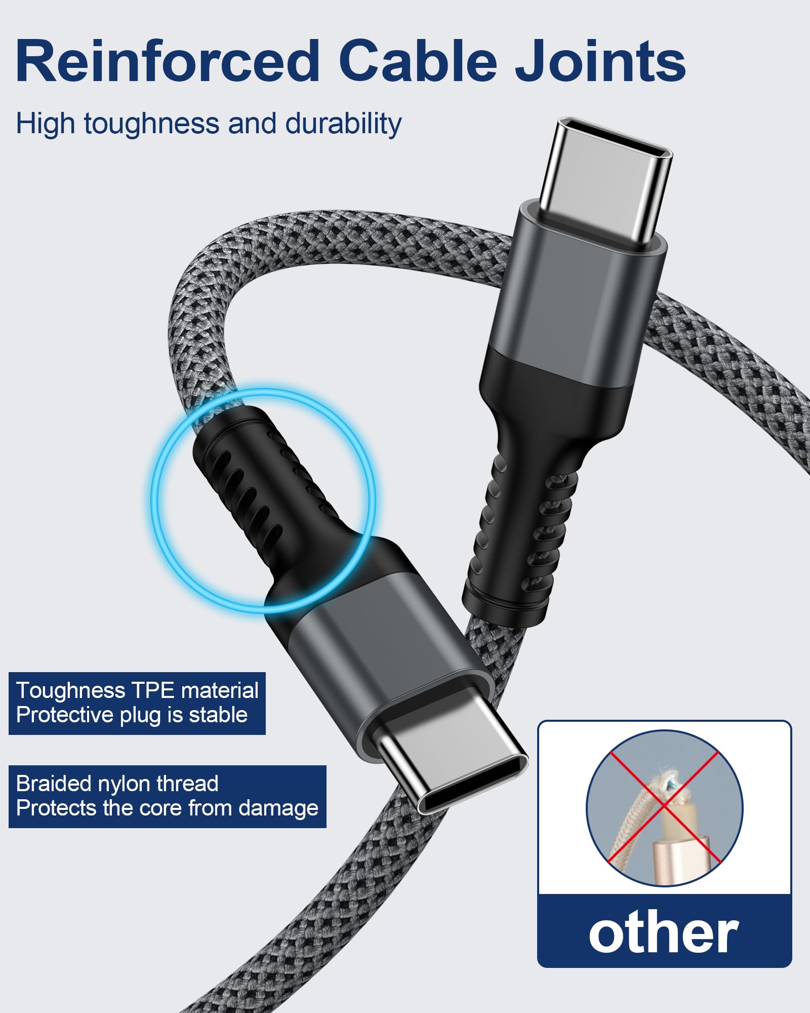Compatibility ---Compatible with iPhone 17/17Pro Max/Air/17 Pro/16Pro/16Plus/16/16e/16 Pro Max/15Pro/15/15 Pro Max/15 Plus; ---Compatible with iPad Pro 13 inch/iPad Pro 12.9 inch 6th 5th 4th 3rd/iPad Pro 11 inch 5th 4th 3rd 2nd 1st; ---Compatible with iPad 11/10, iPad Air 6th 5th 4th, iPad Mini 6; ---Compatible with Samsung Galaxy S25 Ultra/S24/S23/S23 Ultra/S23 FE/S22/S21 Ultra/S20 FE/Note 20 Ultra/Note 10; ---Compatible with Samsung Galaxy A17/A16/A15/A14/A56/A55/A36/A26/A25/Z Fold 7,6,5/Z Flip 7,6,5; ---Compatible with Google Pixel 10 Pro XL/10/9 Pro XL/9/9 Pro/9 Pro Fold/8/8Pro/7/7Pro/6a/ 6/6 Pro/ 5/5a 5G/4a 5G/4a/4; ---Compatible with LG K92 5G/ K71/K62/K6/K52/K42/Q92 5G/Q6/Q52 , Moto and more usb-c devices Specifications ---Color: Grey ---Material: Nylon Braided ---Output: 60W ---Package Include: 1* USB C charger cable ---Guarantee: 12 Month Warranty Features Fast Charging: The maximum current of the cable can be up to 60W, it can power up iPhone 16 from 0% to 50% within 30 minutes. And it also provides 480Mbps data transfer. Durability: Premium Nylon braided is tangle-free and flexible, the high-quality aluminum housing makes the cable more resistant to heat and durable. Ensure a longer service life. High Quality Construction: The usb c iPhone 16 power cord is made of a combination of high-quality materials, it provides stable voltage and current protection to ensure safe charging of your device at the full fast charge. 6 feet Length: USB C Chagring Cable 6ft meets all your charge needs when you are in your bedroom, sofa, office and the backseat of your car which makes your life more convenient.