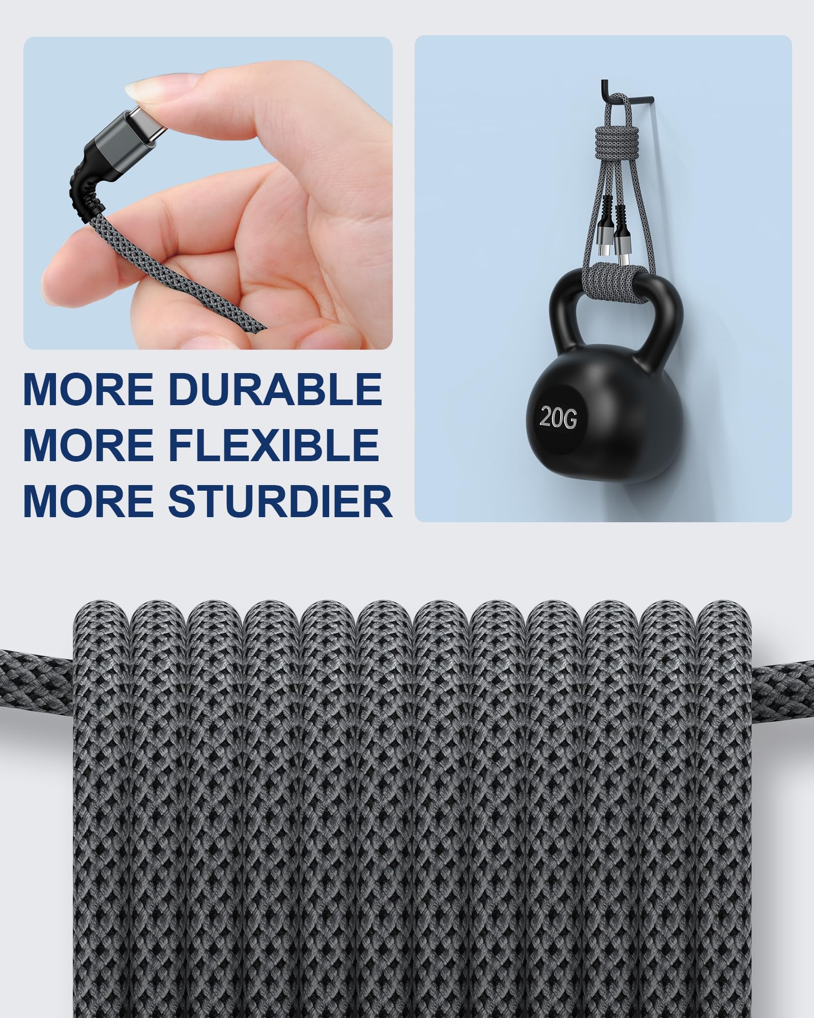 【Durable Material】: USB C iPhone 16 charger cable cord fast charging is made of premium Nylon braided, tangle-free and flexible. over 45000+ bend lifespan test makes the type c power cord more durable than others. The high-quality aluminum housing makes the cable more resistant to heat and durable. Ensure a longer service life.
