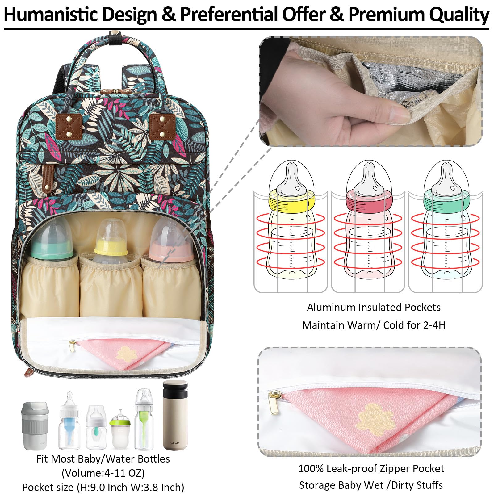 Impressed With Overall: Tenot baby backpack diaper bag only 1.54 lbs, but comes with 10 pockets and spacious to keep diapers, breast pump, wipes, formula, toys, cell phones, baby bottles, books, laptop, clothes well organized; The quality is top-notch, strong zipper, sturdy stitching, detachable stroller straps; Especially has 3 insulated bottle pockets to keep warm/cold 2-4 H; This makes diaper bag purse very durable and will not easily fall apart; A good bet baby boy baby girl diaper bag