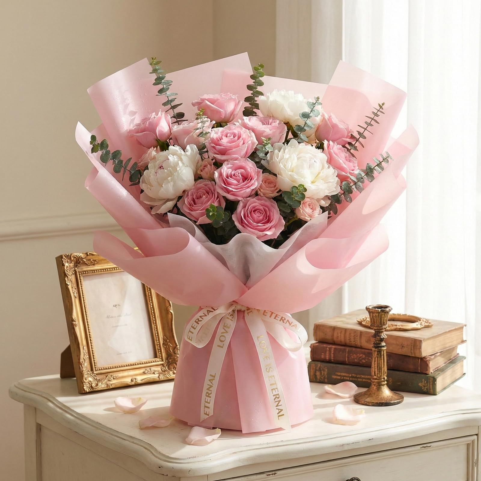 【Elegant Design】Classic pure pink design,new and charming color lines make the whole bunch of flowers full of fashion design.smooth and comfortable to touch,makes wrapping paper more noble.