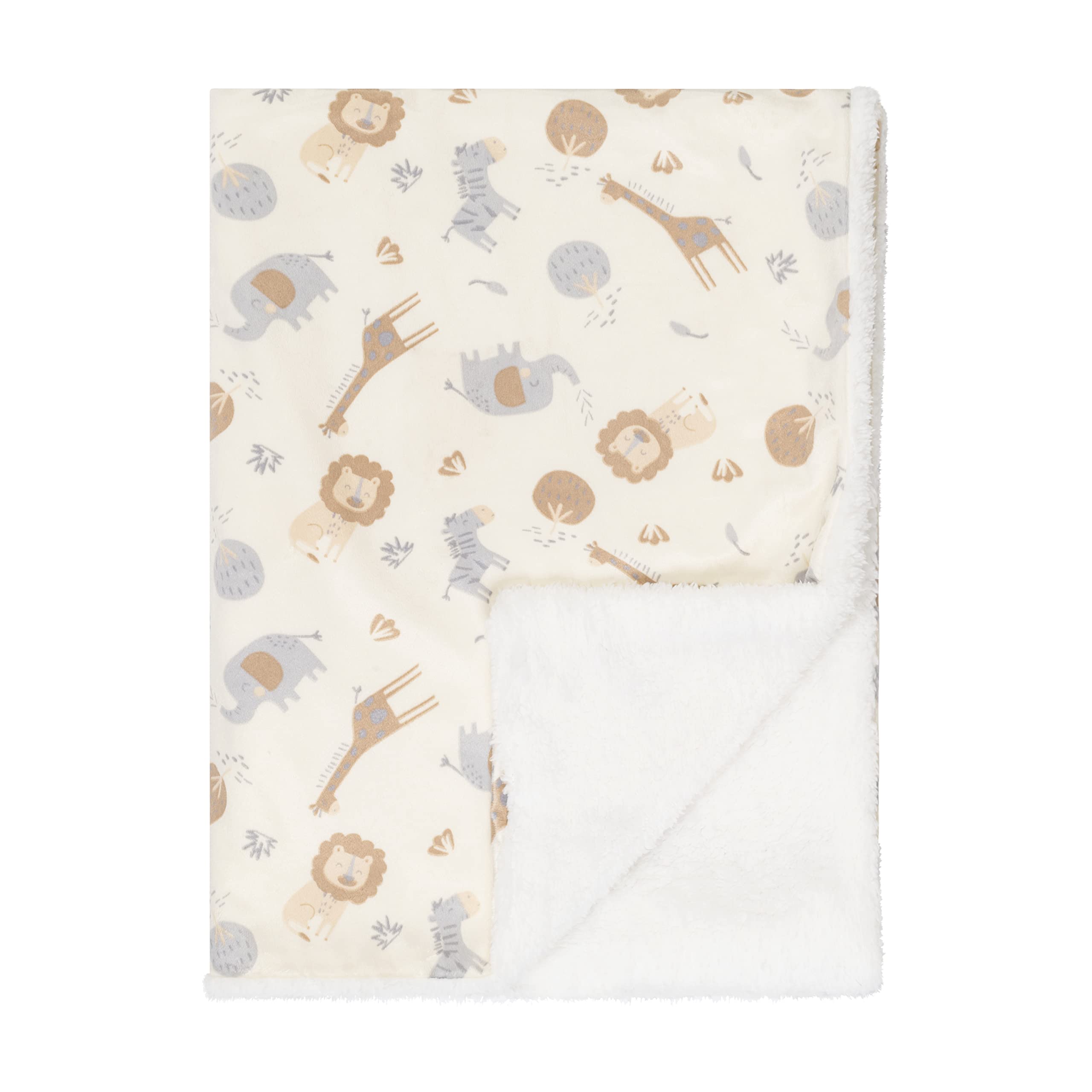 OH-SO-CUTE AND SOFT CRIB BLANKET FOR A BABY GIRL OR BOY: This white baby blanket designed with grey elephants and zebras and brown lions and giraffes is luxuriously soft with a micro mink front and sherpa backing. Wonderful for cuddling while rocking and during storytime.