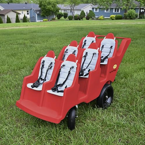 Triple Row Stroller: This 6 seat stroller for kids lets you easily transport up to 6 children, making it ideal for busy daycare centers, preschools, or large families on outings. Each comfortable seat of this toddler stroller holds a child up to 40 lbs.