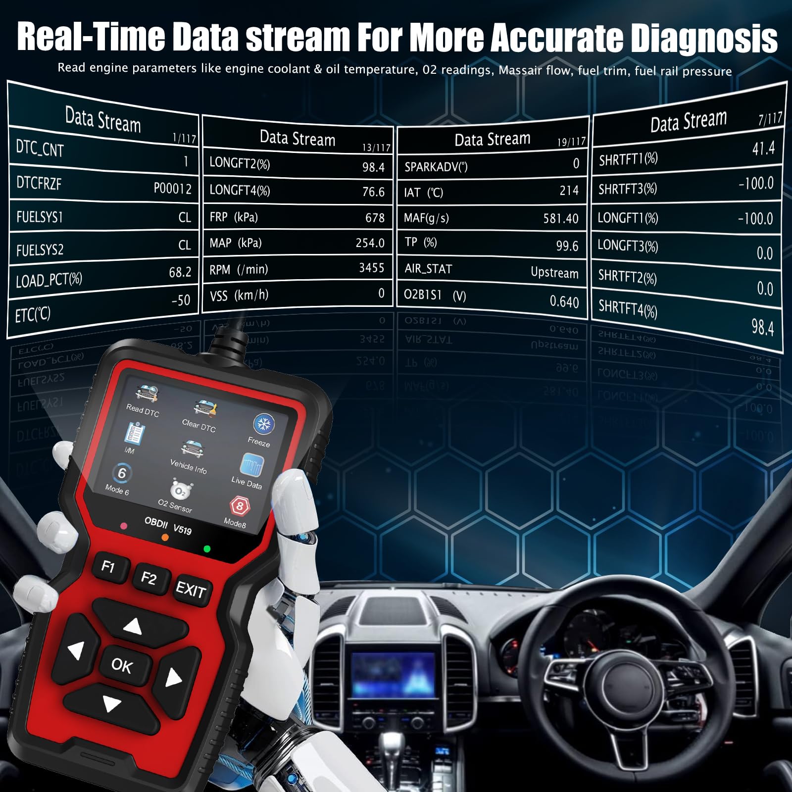 OBD2 Scanner Built-in 35,901 DTC Lookup: The OBD2 scanner car code reader built-in 35,901 DTCs, the old model obd2 scanner diagnostic tool usually only have 3,000-10,000.the OBD2 Scanner of DTC library covers tens of thousands detailed fault code definitions that will quickly determine the fault cause and catch potential problems before they cost you a fortune. Besides, you don't need to google the meaning of each fault code.If you are looking to replace or upgrade an existing car code reader, this code reader is an excellent option.