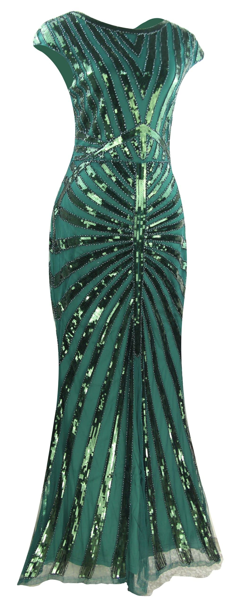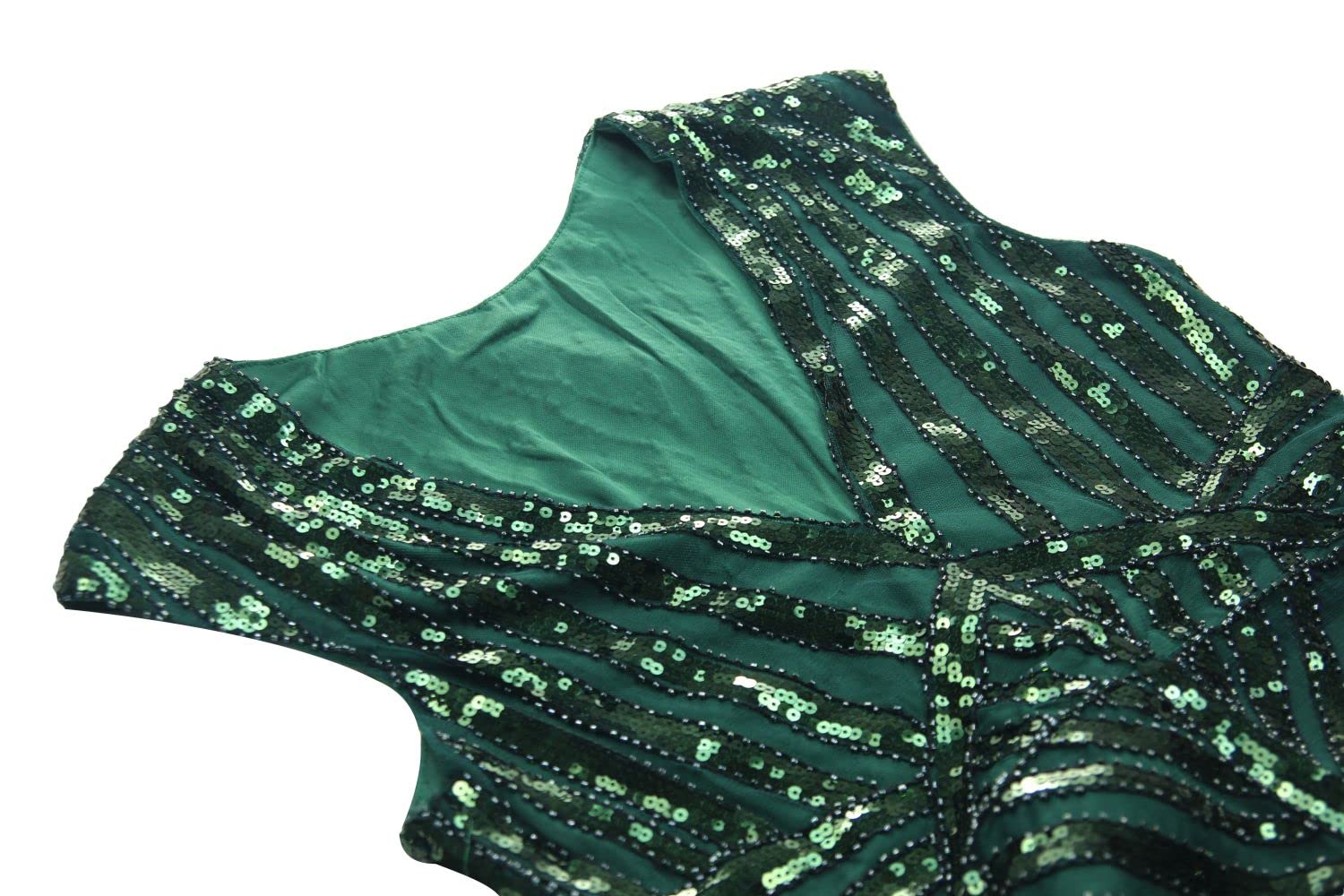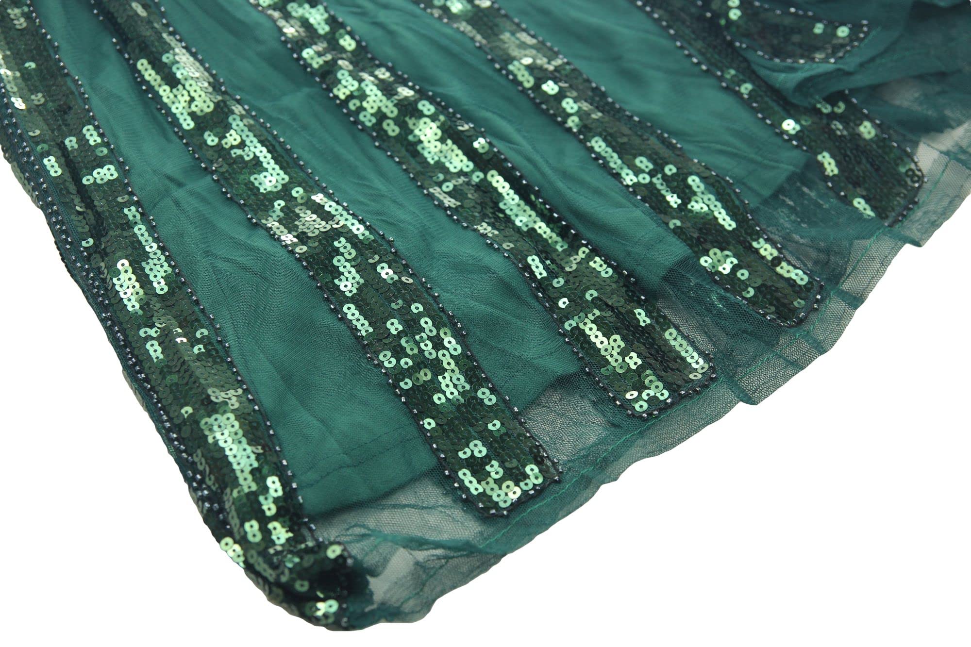 Package:1 x Sequin Dress, 1 x Cigarette Holder, 1 x Long Satin Glove, 1 x Feather Headband, 1 x Pearl Necklace, 1 x Earring, 1 x Bracelet.