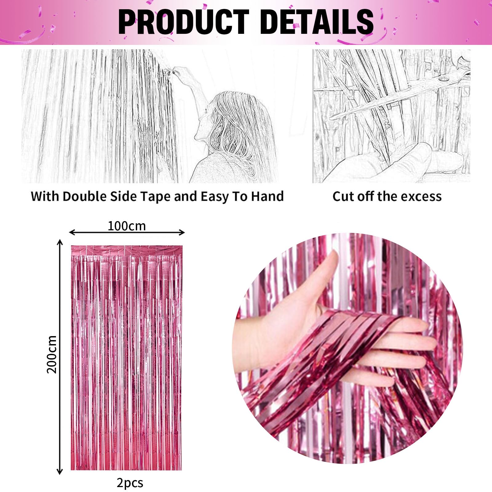 🎀 EASY TO USE - fuschia pink birthday balloons are sophisticated, and you can blow them up with your mouth, a pump, or helium! The foil balloons have self-sealing valve does not need to be knotted. And The happy birthday banner bunting comes with ribbon, very easy to assemble and hang. Tear off the back of adhesive tape, then paste this pink fringe curtain on the top of wall, window, door or anywhere you like to Liven up your party atmosphere.