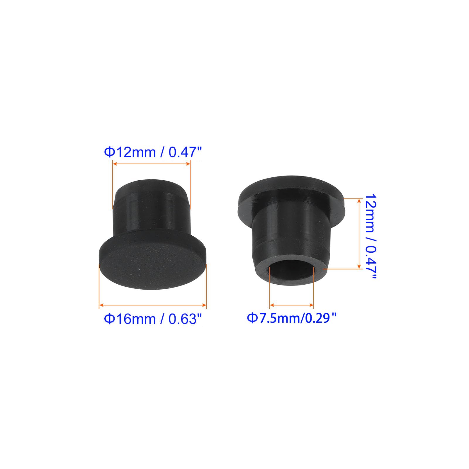 Rubber Stoppers Bottom diameter: 12mm(A12).Top diameter: 16mm.Height: 12mm.Hole inner diameter: 7.5mm.Applicable aperture: 11.5mm.Color: Black.Different sizes can meet your different needs.Please confirm the sizes before your ordering.Reminder: Silicone has a certain degree of softness and elasticity. Please choose a size one size larger than the actual aperture for better sealing.