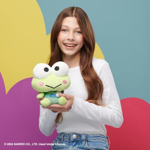 Keroppi, the adventurous frog, can now explore the world in his cozy and stylish hoodie. This 8-inch plush combines super soft material and intricate embroidered details, making it the ultimate plush to cuddle and collect! Keroppi carries Denden, his easygoing snail friend, as his bestie accessory. Add Keroppi and his friends Hello Kitty, Kuromi, My Melody, and Cinnamoroll to your collection!