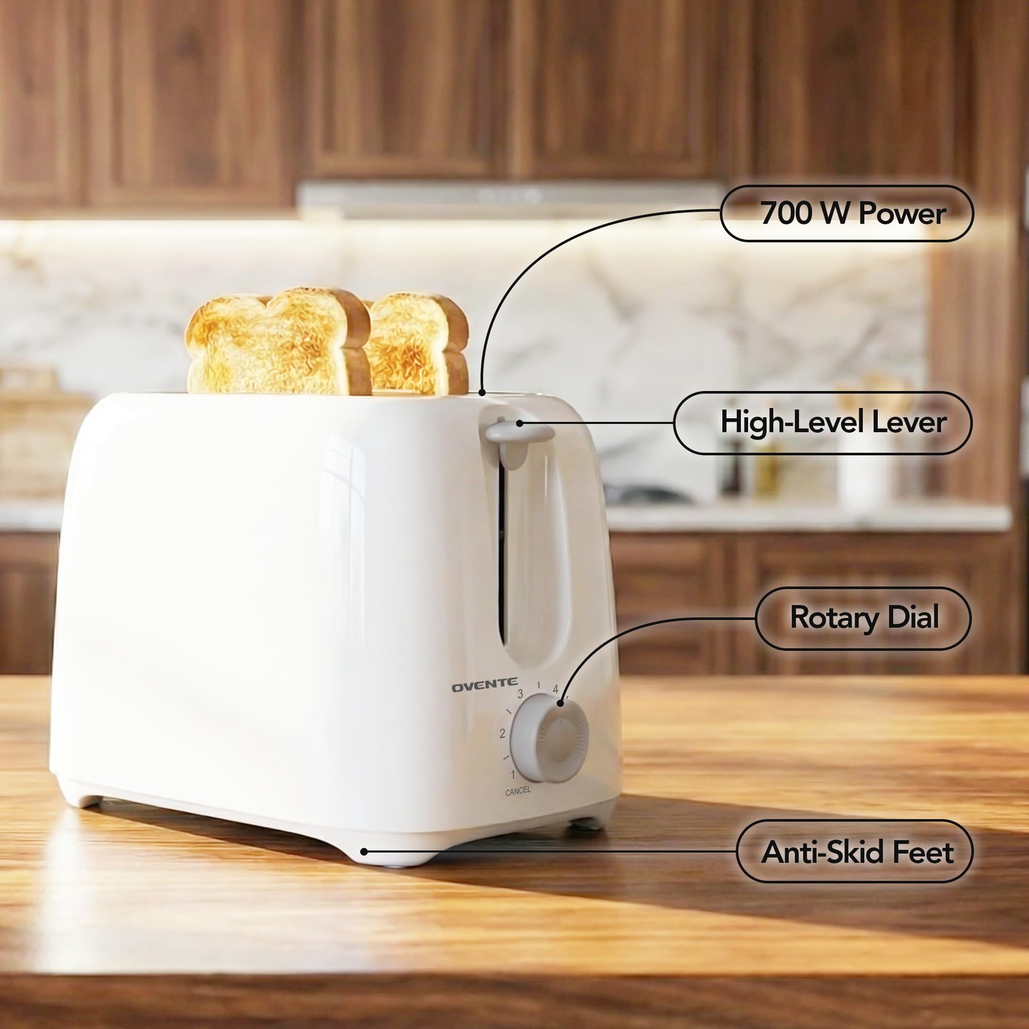 Start your day with fresh, perfectly toasted bread with the OVENTE 2-Slice Toaster TP2210 Series—a must-have kitchen essential to elevate your breakfast experience! Powered by a 700-watt heating element and offering 6 adjustable toasting shades, this toaster ensures even toasting, crisp on the outside while still moist in the middle—just the way you want it. It features a high-lift lever for easy and safe removal of bread and a cancel function to stop the toasting cycle whenever needed. Designed for both style and efficiency, this toaster adds a touch of elegance to your kitchen with its simple yet classy appearance. Its compact size ensures it takes up minimal space, making it easy to store in a cabinet or on a shelf. Plus, cleaning is a breeze thanks to the removable crumb tray—effortlessly discard excess crumbs and wipe down the exterior with a damp cloth. The built-in cord wrap in the base of the toaster makes it easy to neatly store when not in use. The OVENTE 2-Slice Toaster TP2210 Series is the perfect tool to make your breakfast easier and more enjoyable!