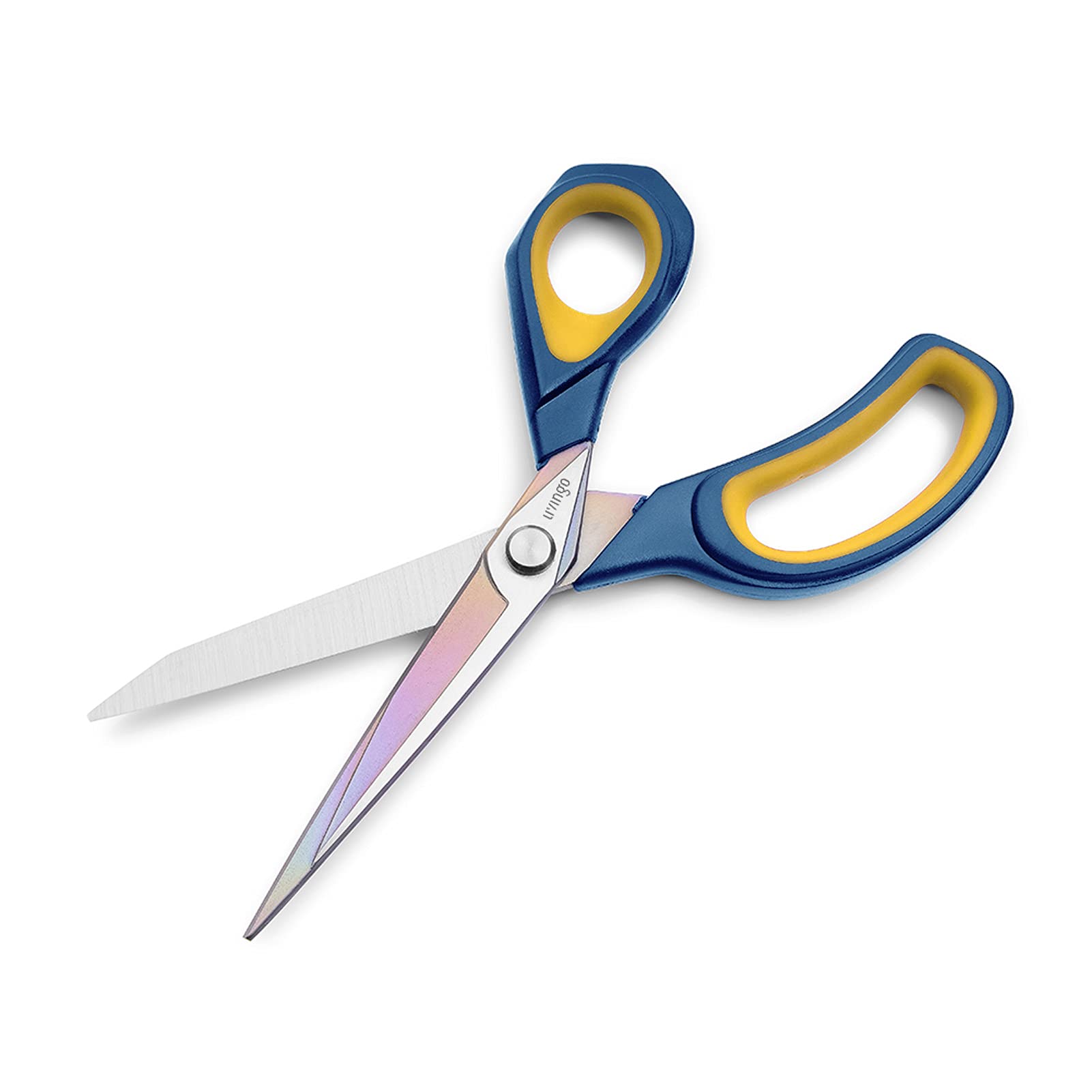 ERGONOMIC HANDLE DESIGN: 8.5" navy blue yellow comfort grip scissors have a contoured design with a rubber inner ring to help reduce hand fatigue while cutting, meantime, ergonomic design is maximizing cutting control and sensitivity.