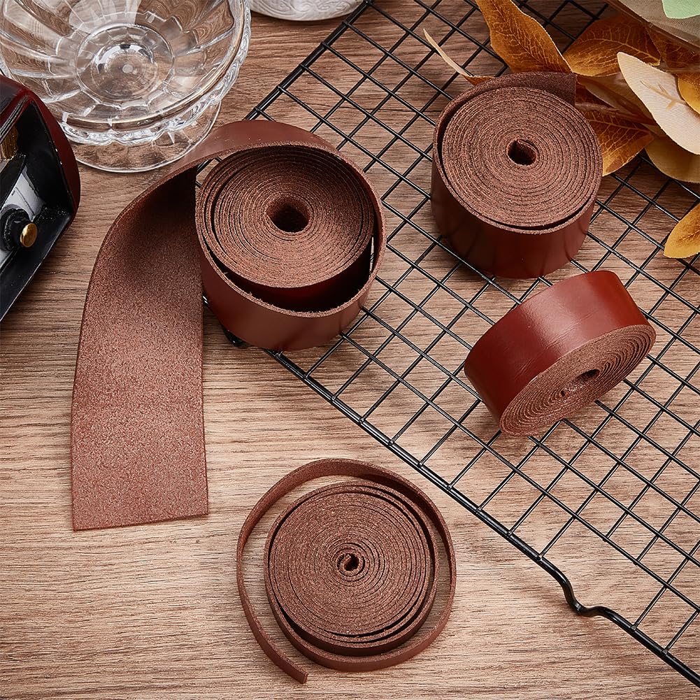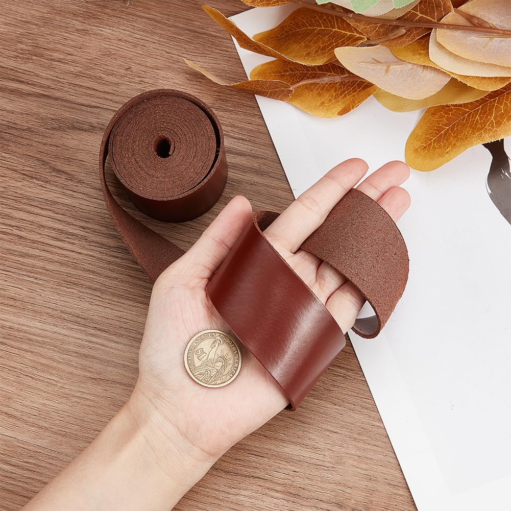 37.5MM WIDE 1.2MM THICK LEATHER STRAP: Comes with 1 roll flat leather cord in saddle brown, about 37.5mm wide, 1.2mm thick, about 2m long, wider size can meet your more DIY crafts need
