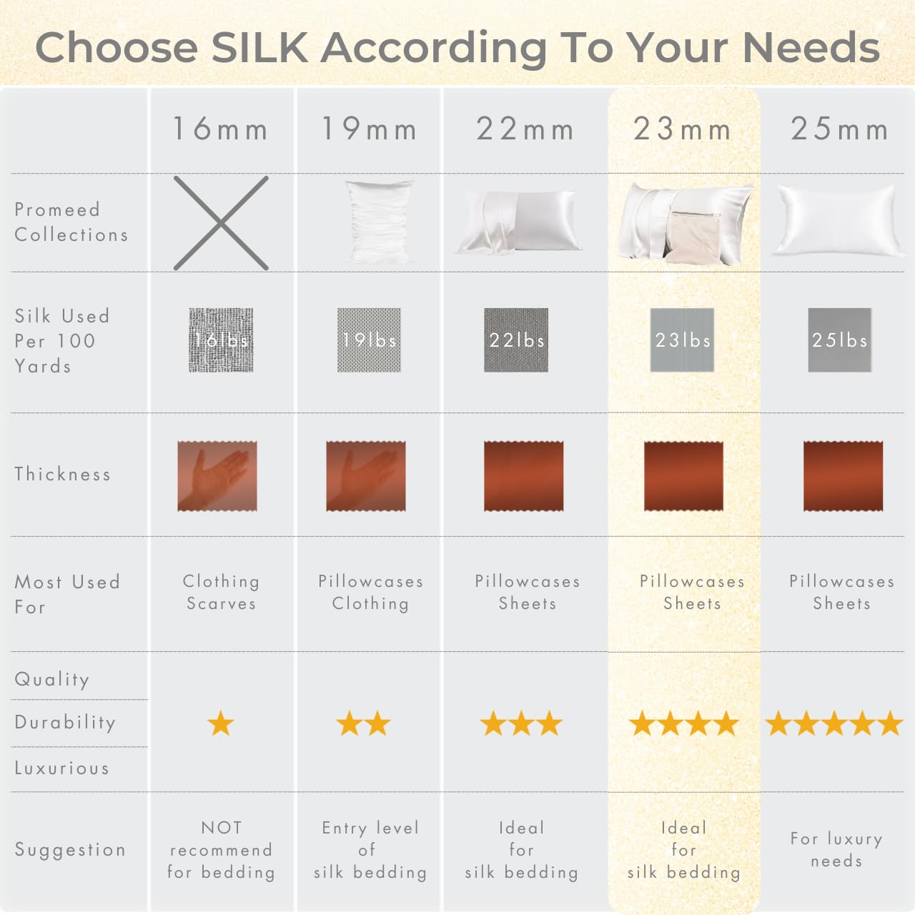 【OEKO-TEX STANDARD 100 CERTIFIED】Promeed 23 Momme mulberry silk pillowcase is made with high quality Grade 6A+ Mulberry Silk, which is super soft, cooling, and non-absorbent making it ultra breathable, preventing breakouts and reducing sleep wrinkles