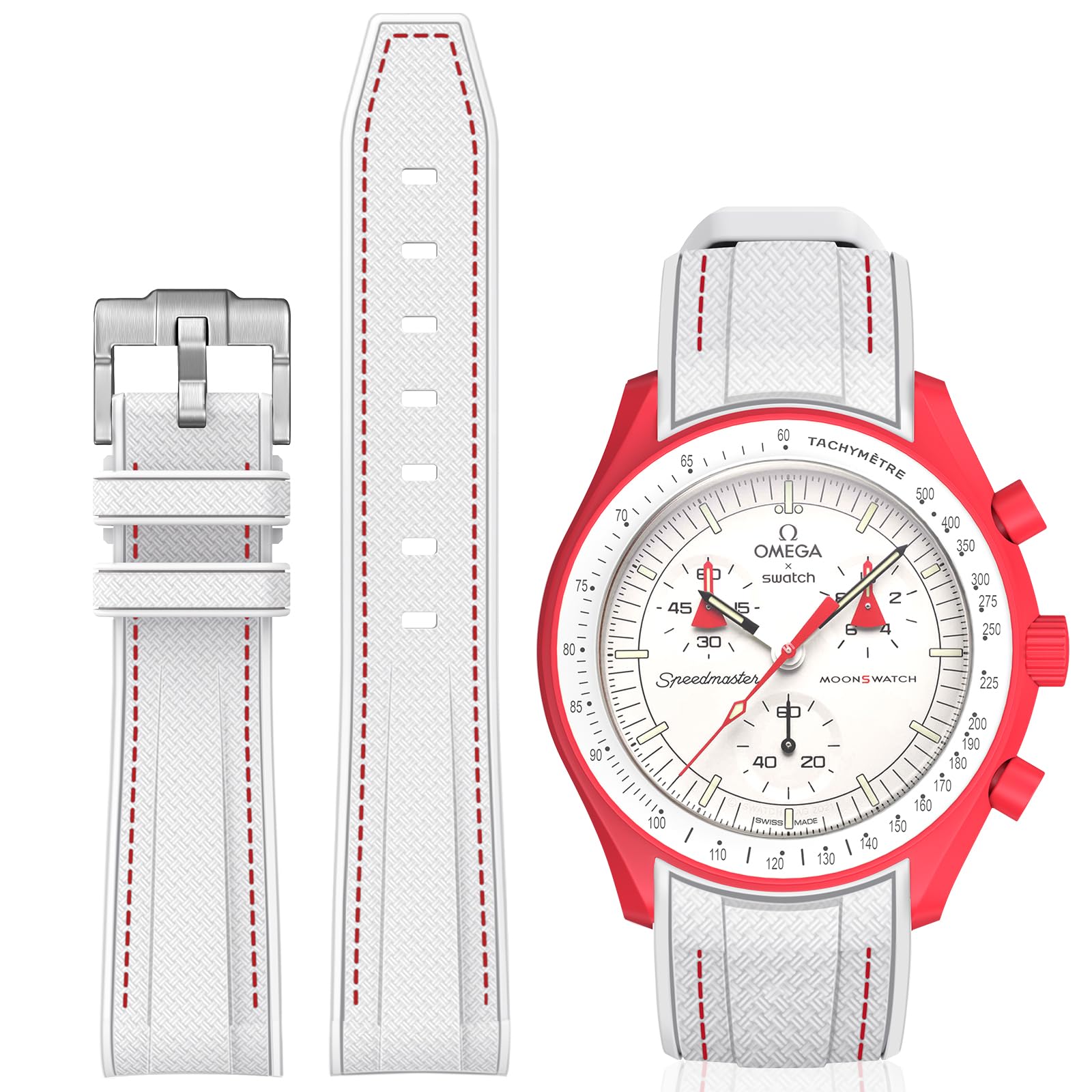 【Seamless Integration】Our strap for omega swatch moonwatch is designed with a seamless integration curved in mind. The bands seamlessly connect to your watch, providing a secure and reliable fit. With our carefully engineered designs, you can enjoy peace of mind knowing that your watch is perfect match attached to the strap.