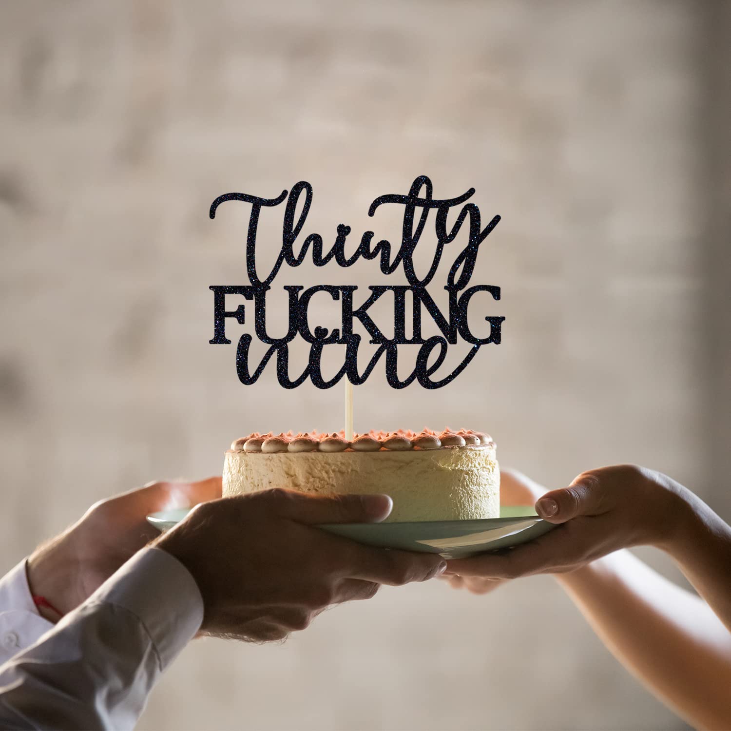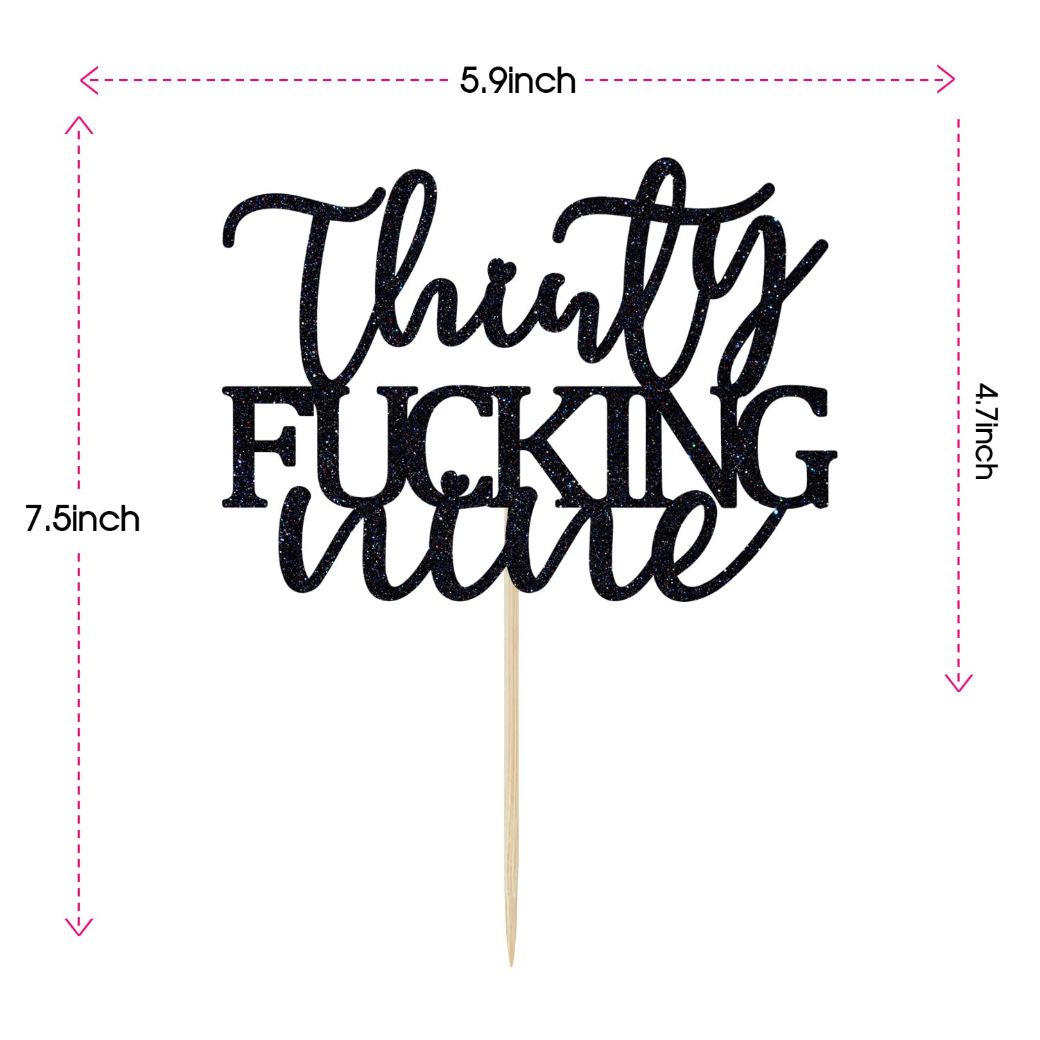 [ Package Include ] 1 PCS Thirty Fucking Nine Cake Topper [ Notes ] 1, The cake topper is not edible! Don't put this product in your mouth! 2, The toothpick is sharp, please don't let children use it alone! 3, The cake topper is made of cardboard, so it is not washable. 4, Picture may appear larger on your screen, color may vary slightly due to the color setting of each individual monitor.