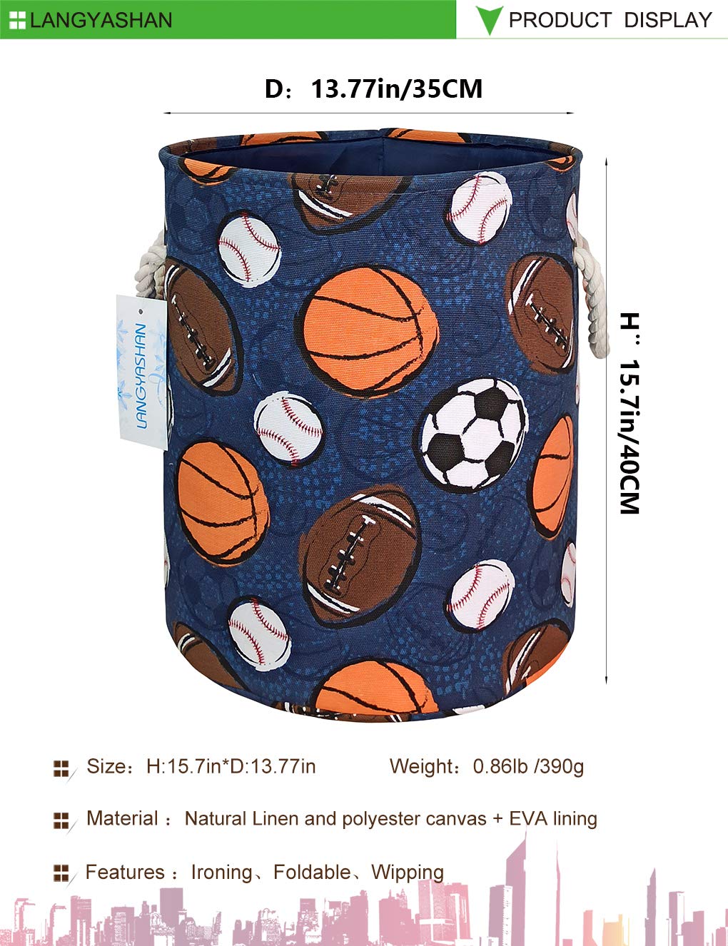 LANGYASHAN storage bin: Perfect for toys, clothing, office, closet organizer - man, woman, boys and girls With our storage bins laundry hamper, you will have a designated spot to neatly store items and keep your family and living spaces organized and efficient while still being within the comfort of your home. Modern and stylish design With modern and stylish design, our storage bins combine both of the ornamental and practical forms. They are not only household life good helpers but also charming decorations. Product specification Material: Made of linen, polyester canvas and EVA lining. Size: 13.77"D×15.7"H inches. Application: for store all kinds of clothing, toys, and other articles. Asily Store When Not In Use Organizational bins are collapsible for easy storage. Fold up the bins and tuck the portable bins anywhere. These bins are great to keep in the trunk of your car for shopping trips or when transporting items for easy in-and-out storage. Fabric reusable baskets are easy to grab and carry just about anything.