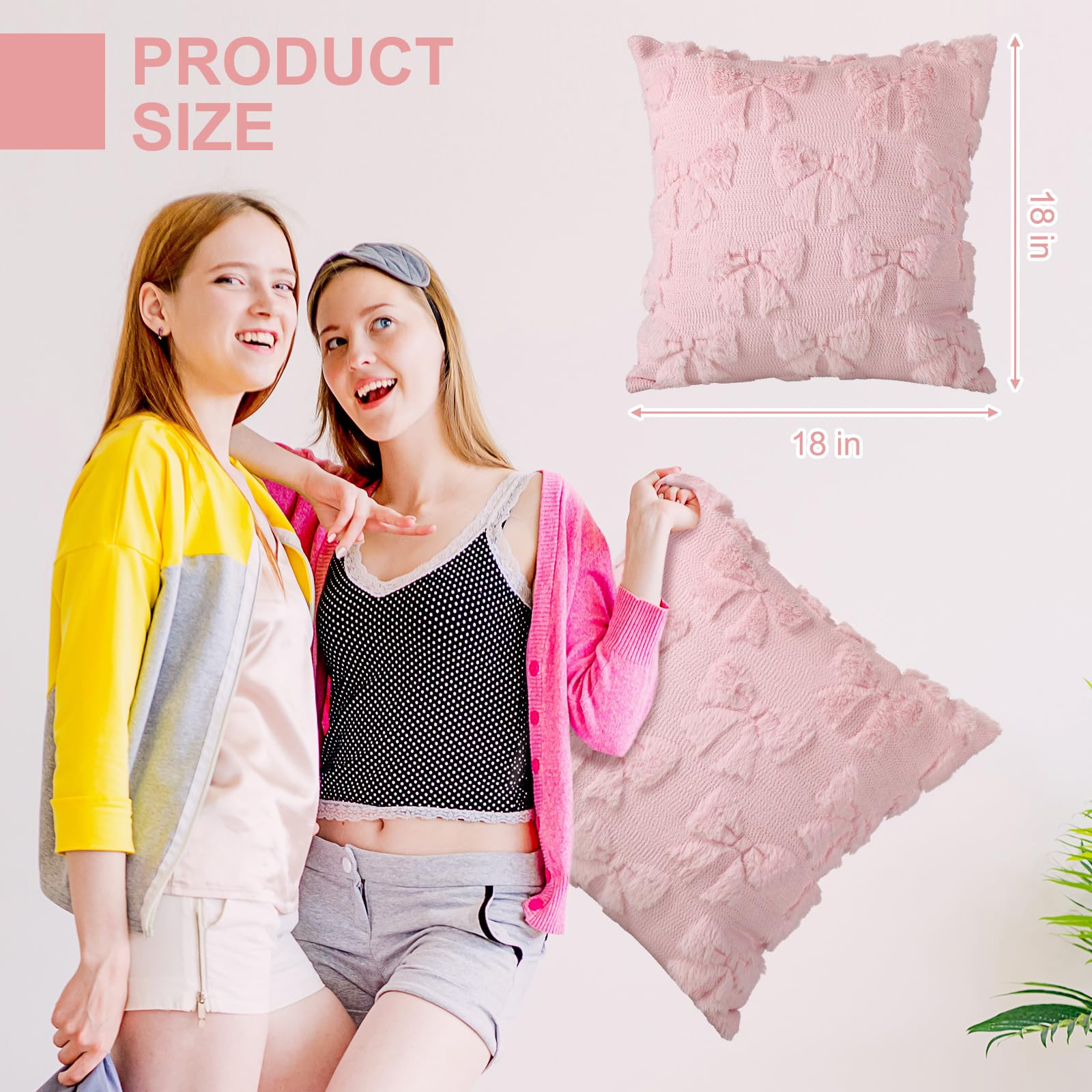 Versatile Design: our Pink Bow Pillow Covers never fail to add a touch of chic to your home interiors; These 18 x 18 inches pillow covers feature a stylish pink bow design that perfectly blends with any decor style; They are suitable for your living room, bedroom