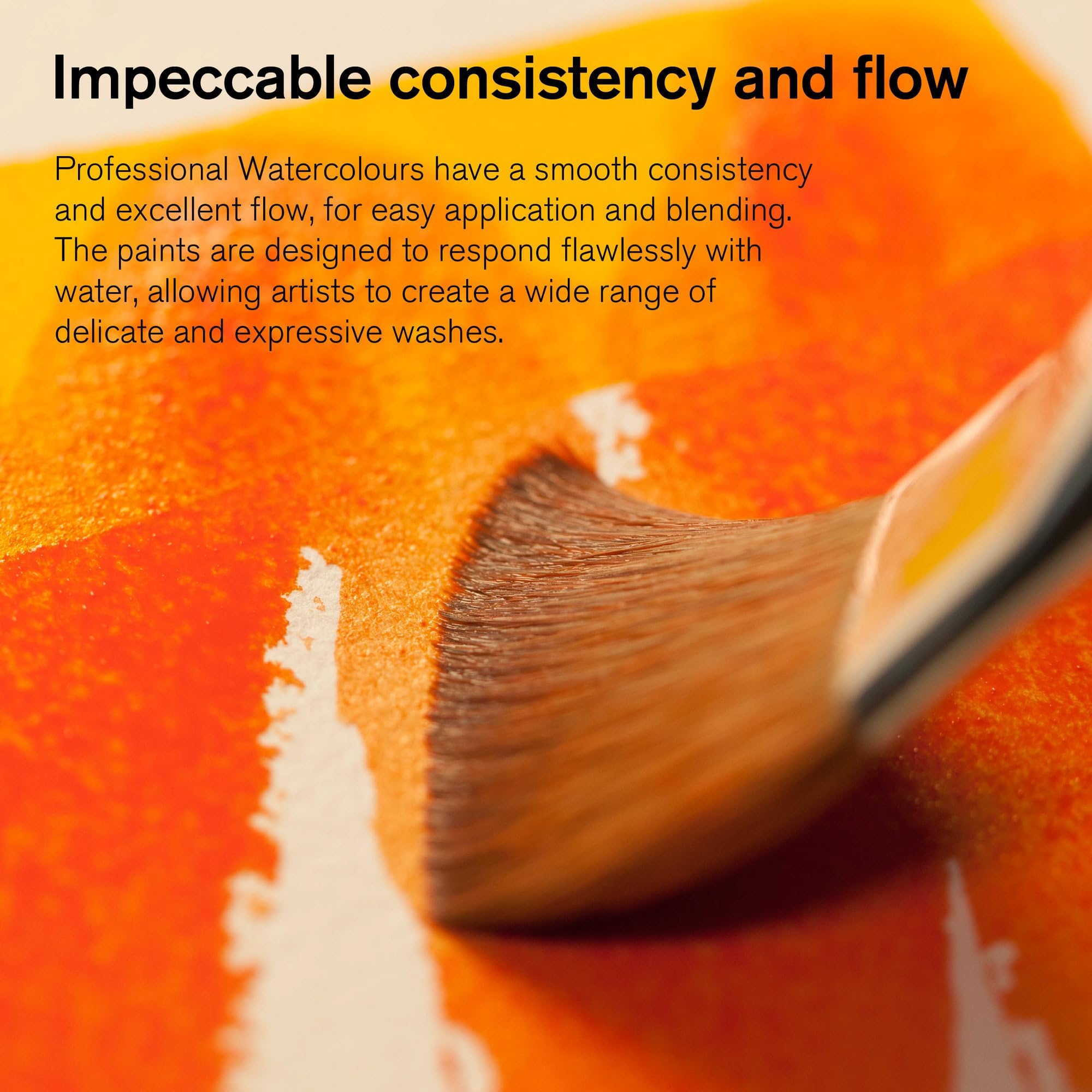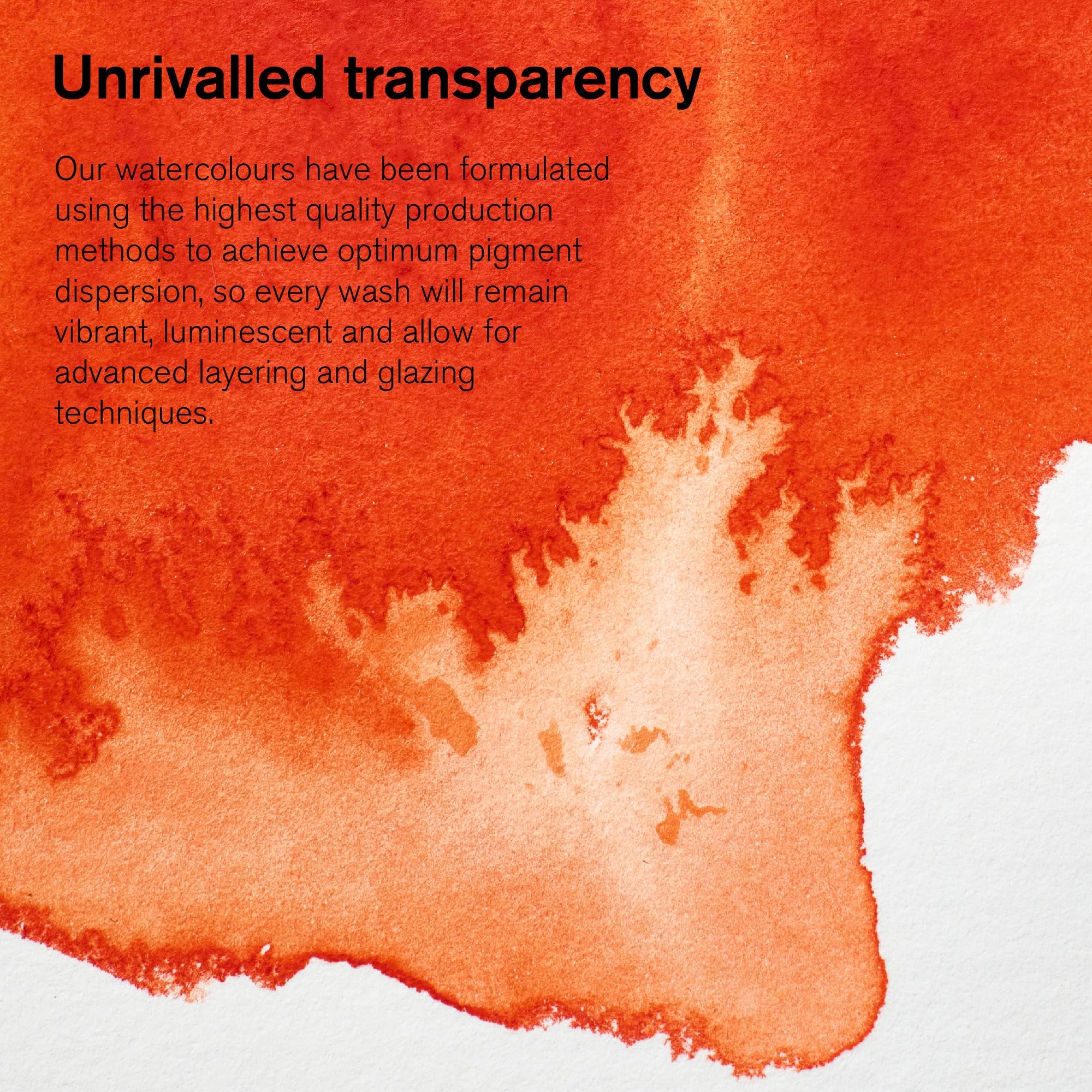 With 115 colours, our Professional Watercolour range offers bright, vibrant colours and unrivalled performance. Watercolour, more than any other medium, reflects the unique characteristics of the pigments used and our Professional Watercolours use only the finest pigments, and are known for their brilliance, permanence and strength of colour. Large range of single pigment colours With 85 single pigment colours in the range, we offer the widest range of modern and traditional pigments for clean colour mixing. Unrivalled Transparency The transparency of our Professional Watercolour is achieved by our unique process of pigment dispersion during manufacture. The natural characteristics of each pigment highlights the paint’s transparency level. In watercolour painting, thin washes are applied allowing the white of the paper to reflect through the wash. Permanence 112 out of 115 colours in our Professional Watercolour range are classed as ""permanent for artists' use”, rated AA or A for archival permanence to ensure that these colours used today will appear the same for generations to come.