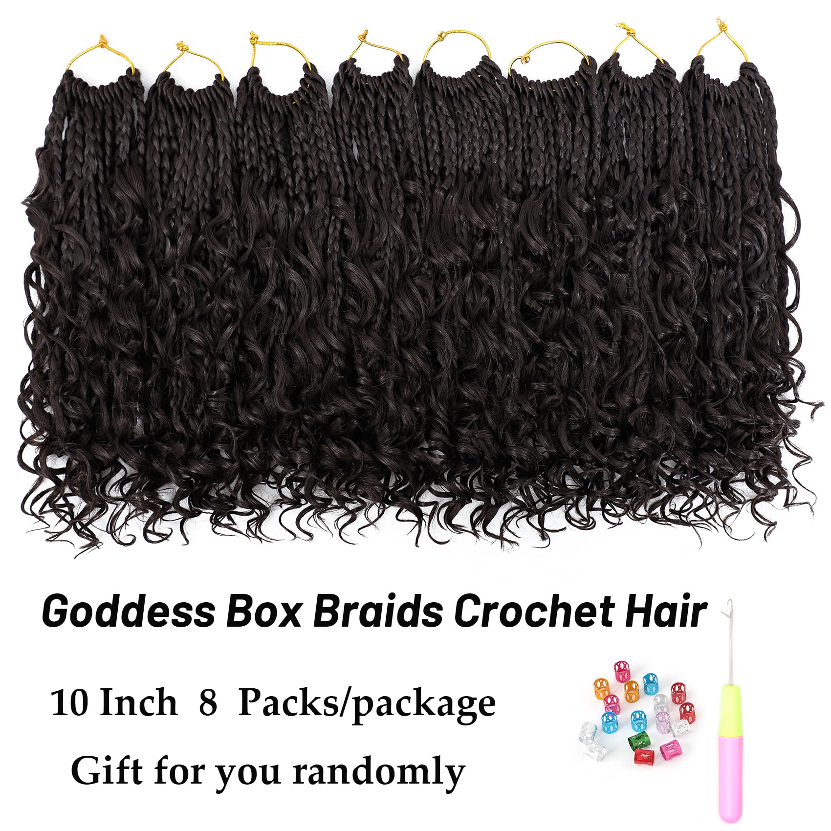 Hair Length and Package: goddess box braids crochet hair is 10 inch, 12 inch and 14 inch,18 inch and 24 inch, 8-9 packs are enough to make a full head. Hair Color:1B, #2 , #27 , #30 , 1B /27 color, 1B/30, T30/27,T30/613,Tgray color, 1B/Burgundy and T1B/blue color. More colors are available.