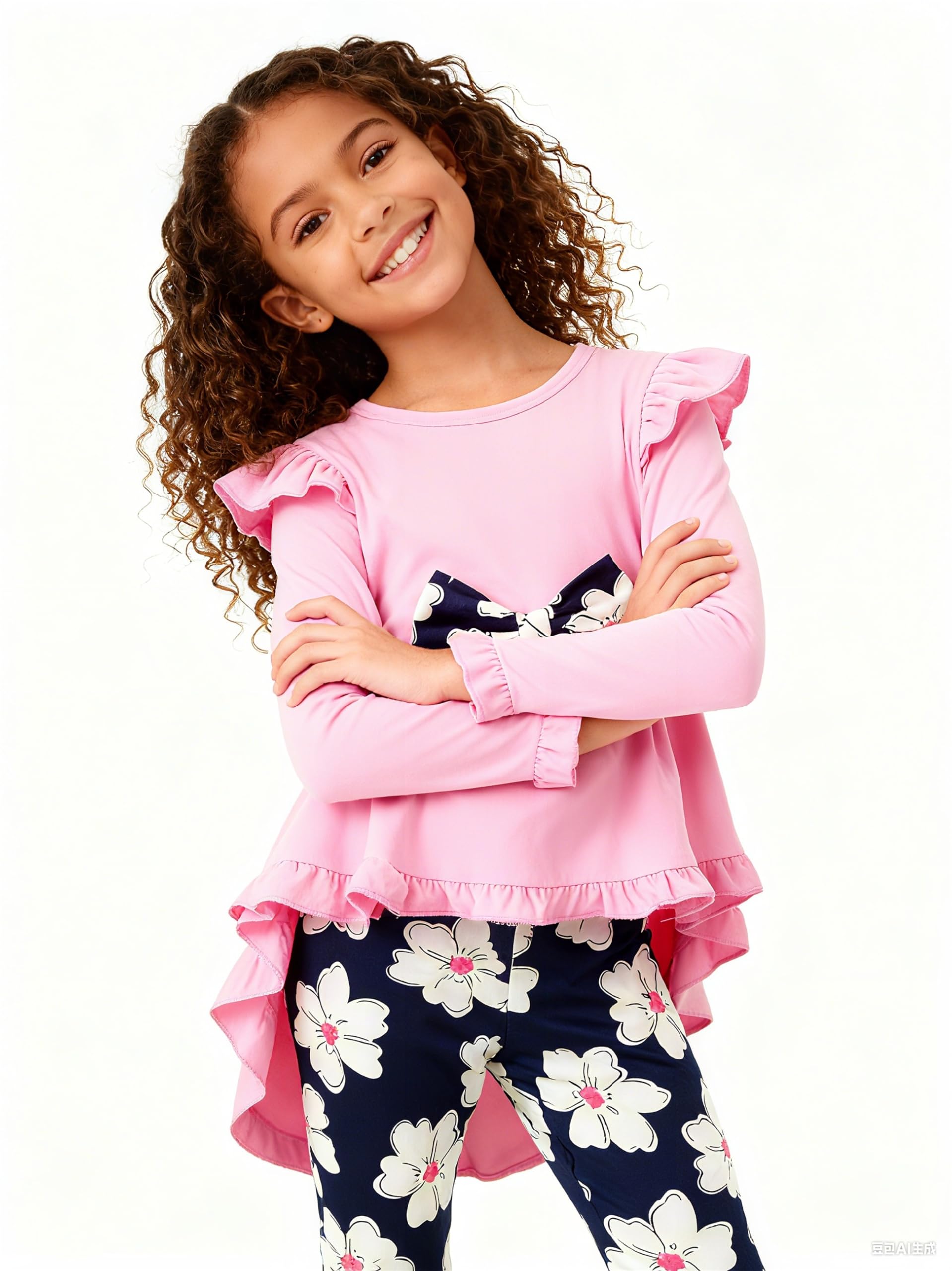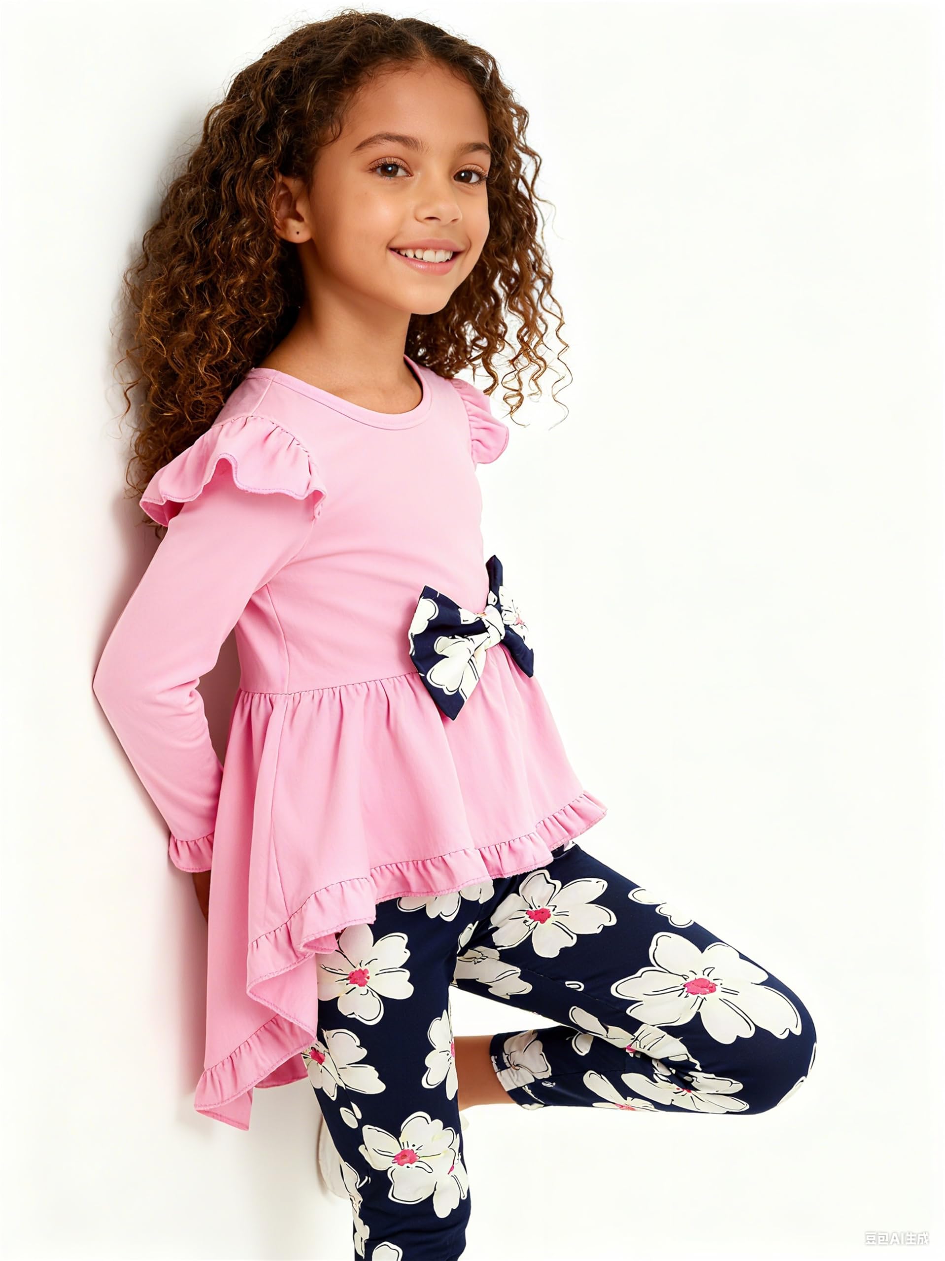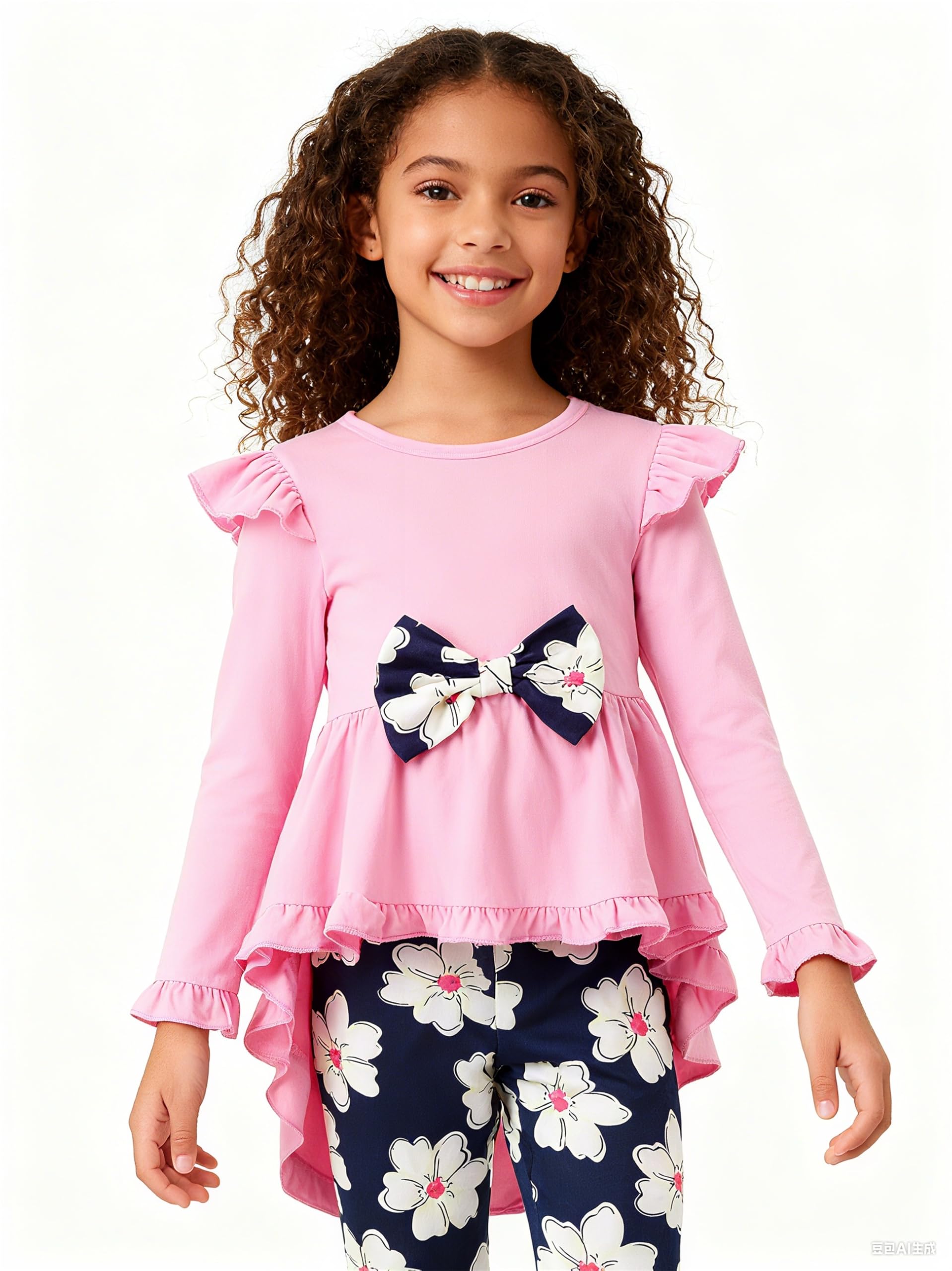 FASHION DESIGN: Ruffle and solid color top design with a cute bow, adorable and fashionable. We are sure your little girl will loves these Floral/Leopard/Sunflower print pant set and she won't want to take it off.