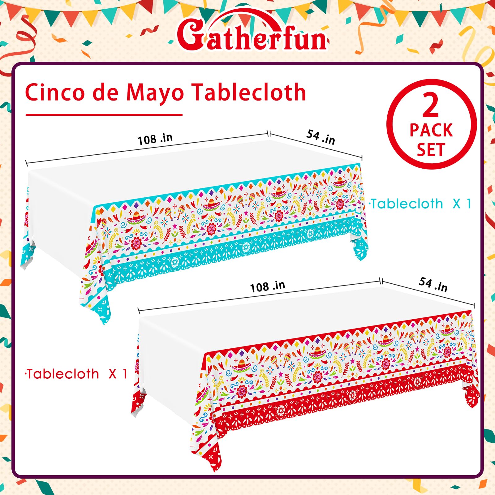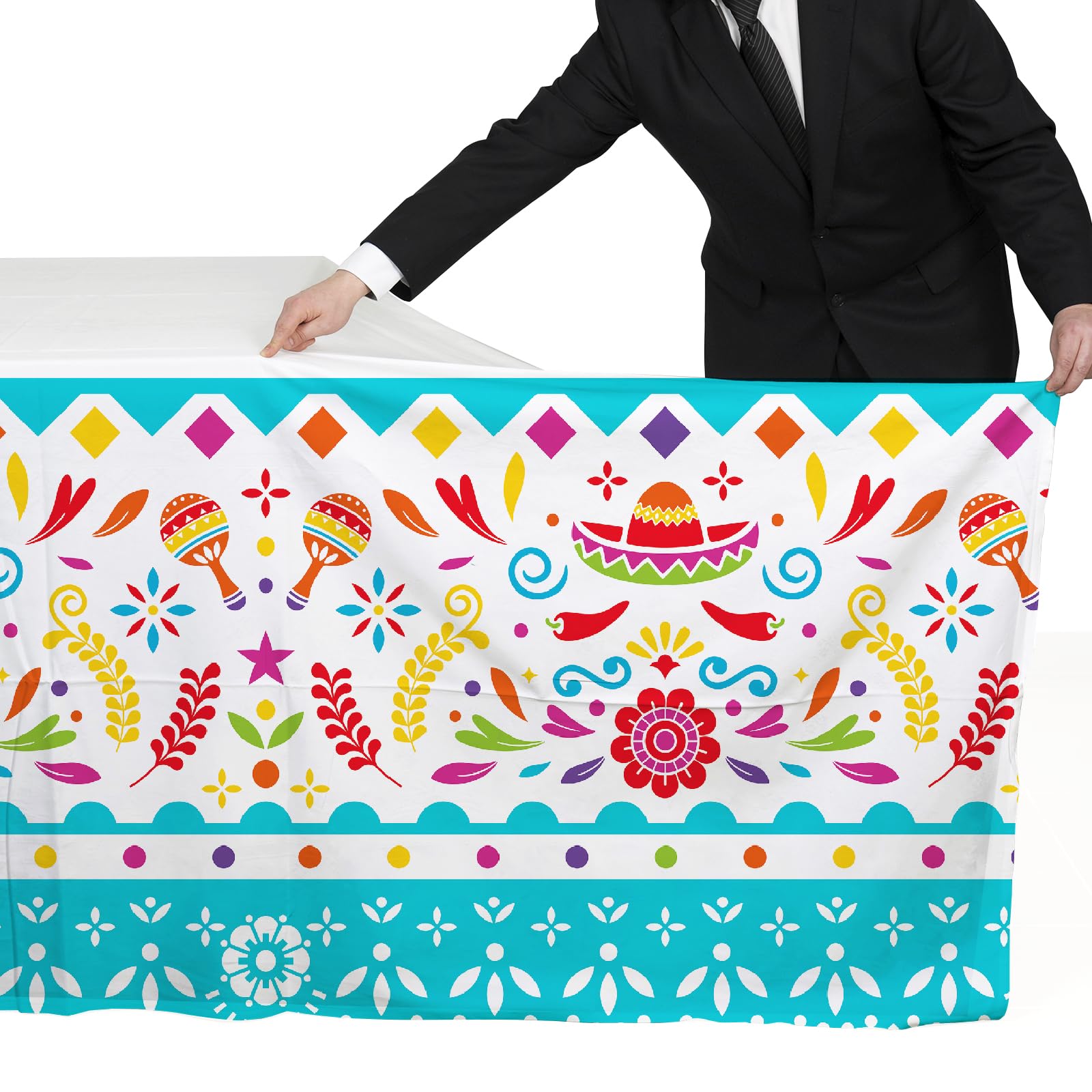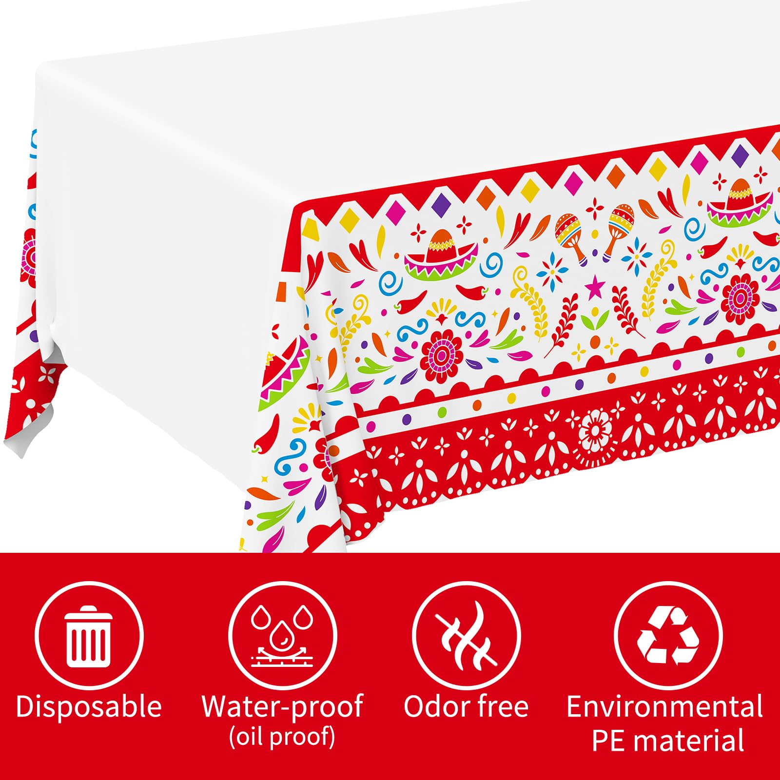 Complete Fiesta Celebration Kit: Elevate your celebration with our complete fiesta celebration kit, featuring 2 elegantly styled 54 x 108 inch disposable plastic tablecloths. Designed for both function and flair, these tablecloths are a must-have for any fiesta party decorations, ensuring your Mexican party is both vibrant and hassle-free.