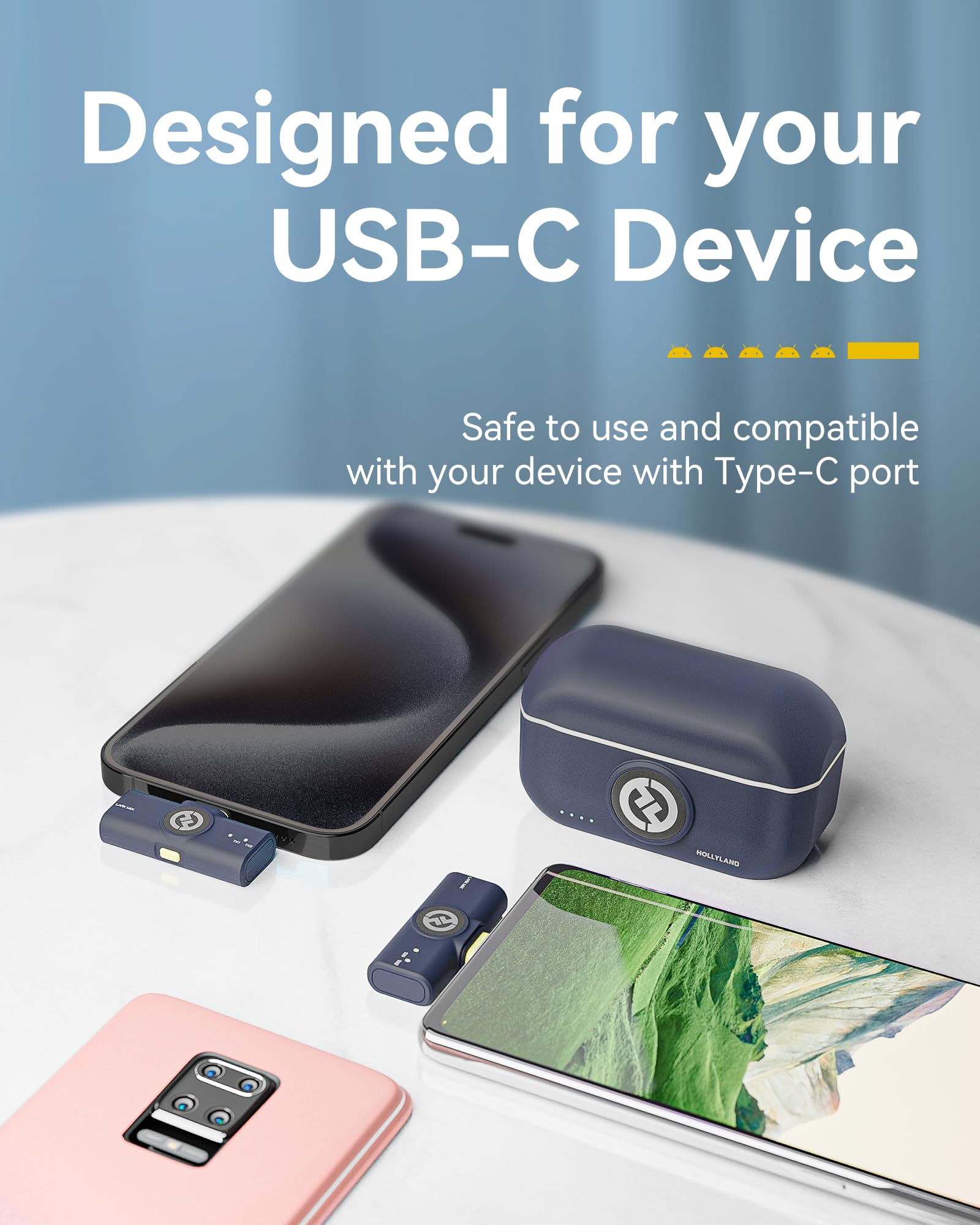 [PLUG&PLAY] The LARK M2 wireless microphone system offers a direct plug on the receiver. It eliminates messy wires and provides a truly wireless recording experience. The receiver of the Lightning version boasts an MFi-certified Apple chip, while the USB-C version is designed for Android phones, Apple 15, action cameras, and computers, giving you a clear and crisp sound output.