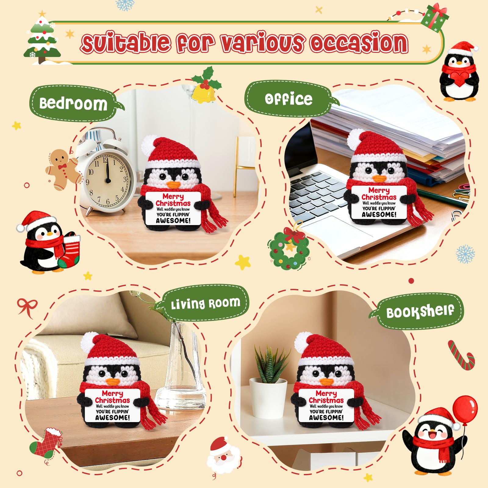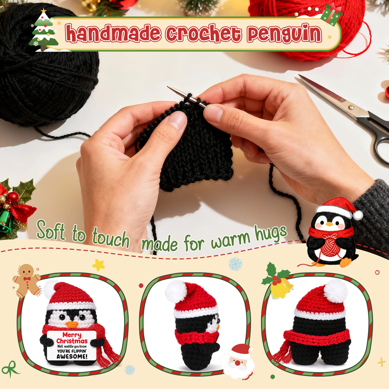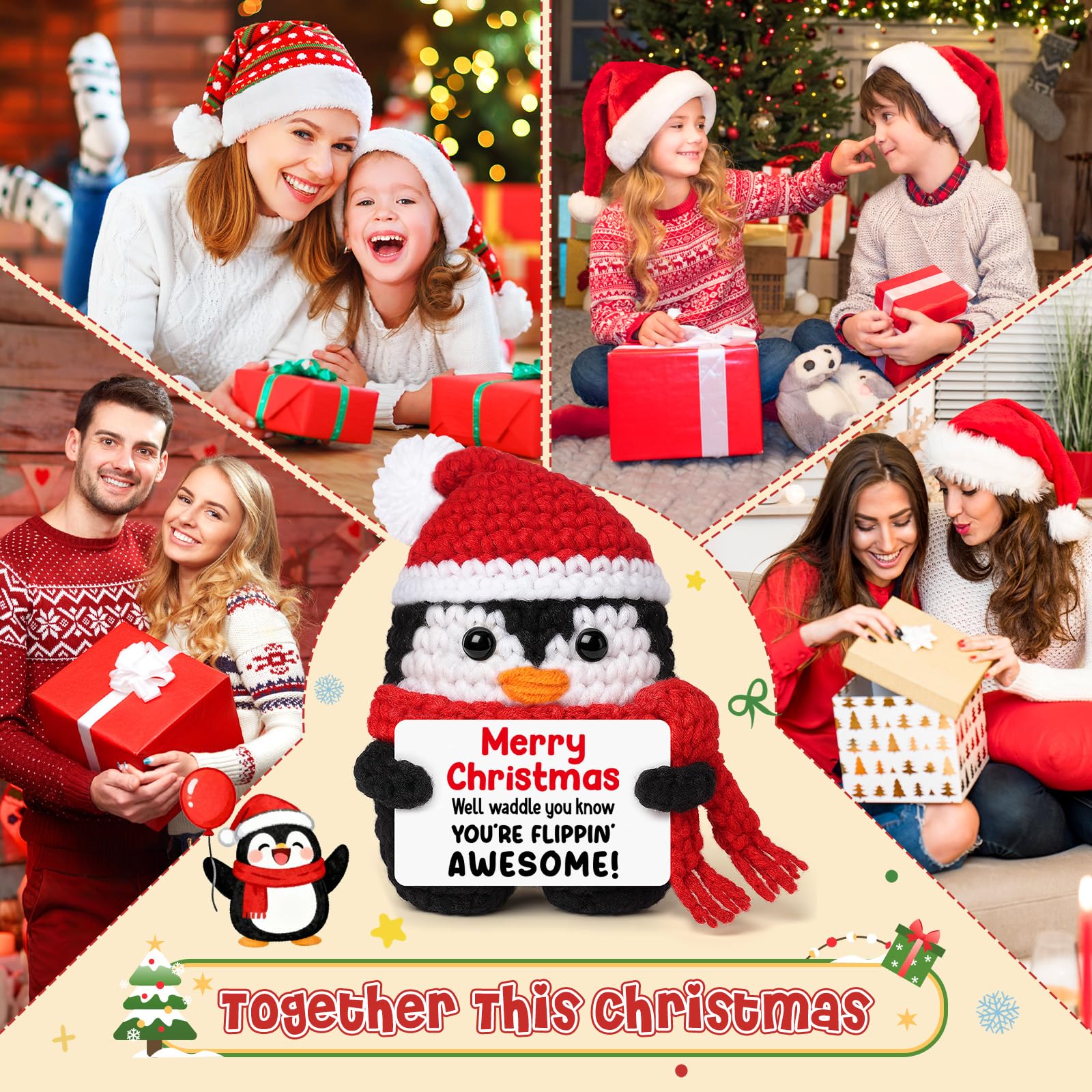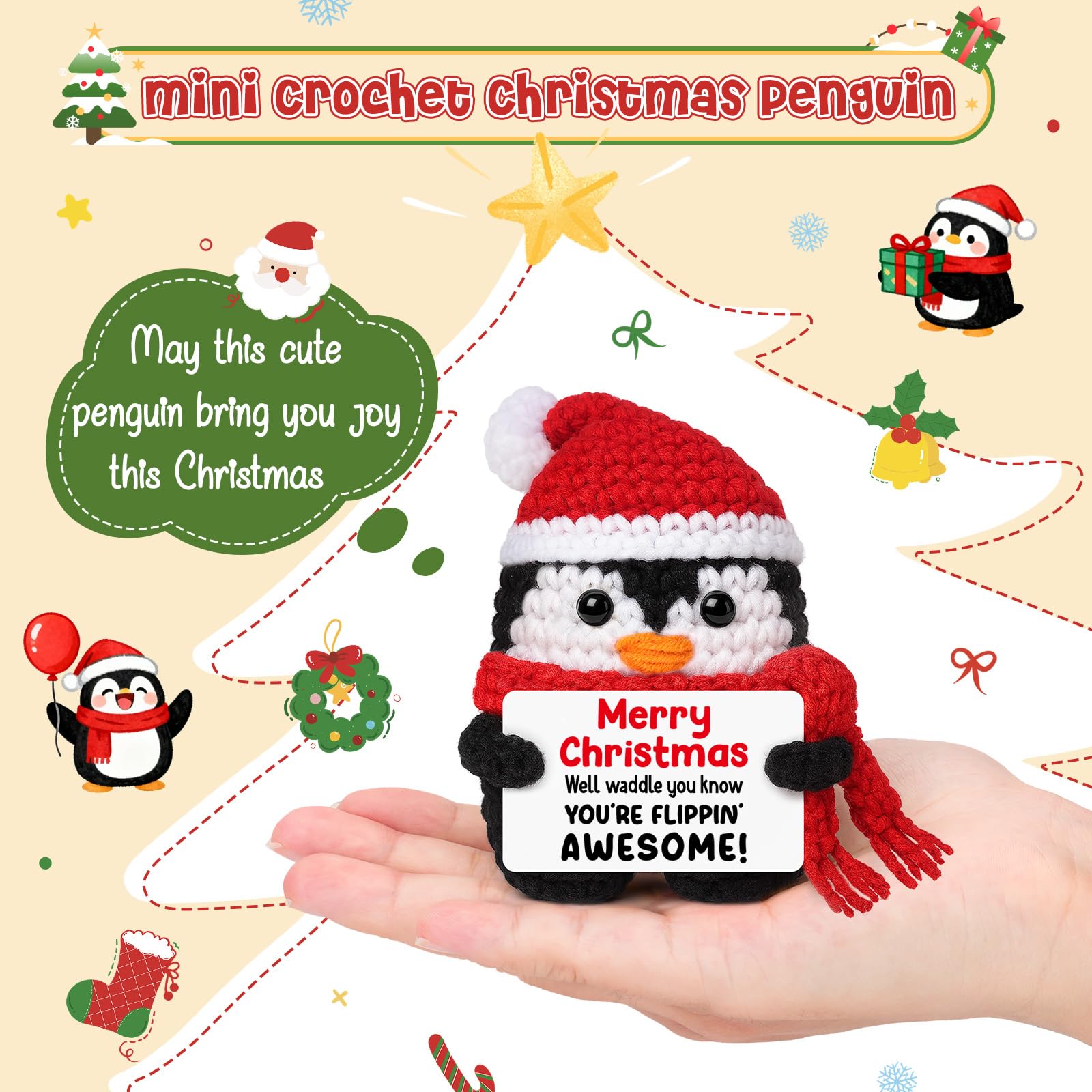 Inspirational Gifts for Women Men, Handmade Positive Crochet Penguin with Positive Card- Christmas Gifts for Women Men Friend Coworker Teen, Holiday Gift Emotional Penguin Support Xmas Decorations