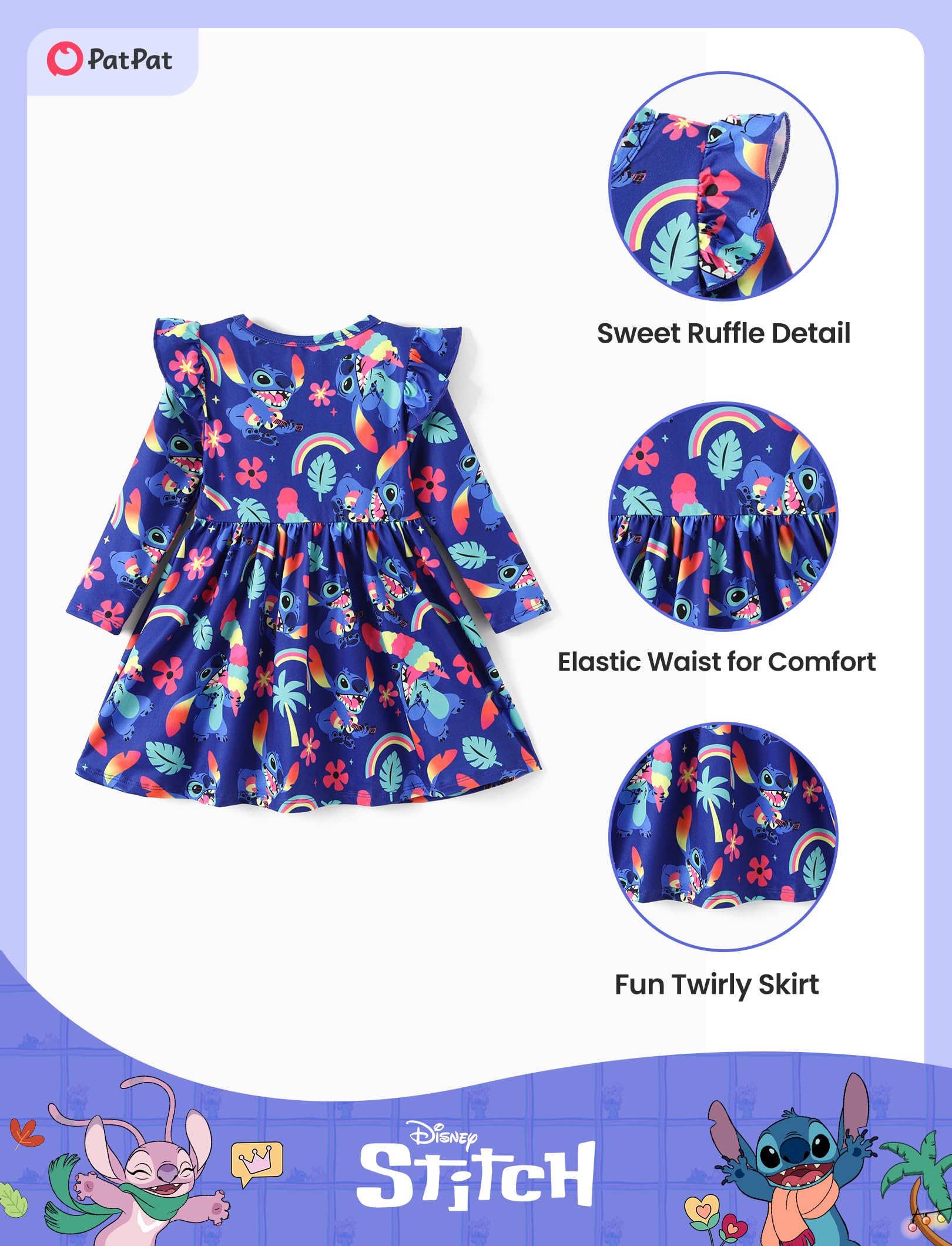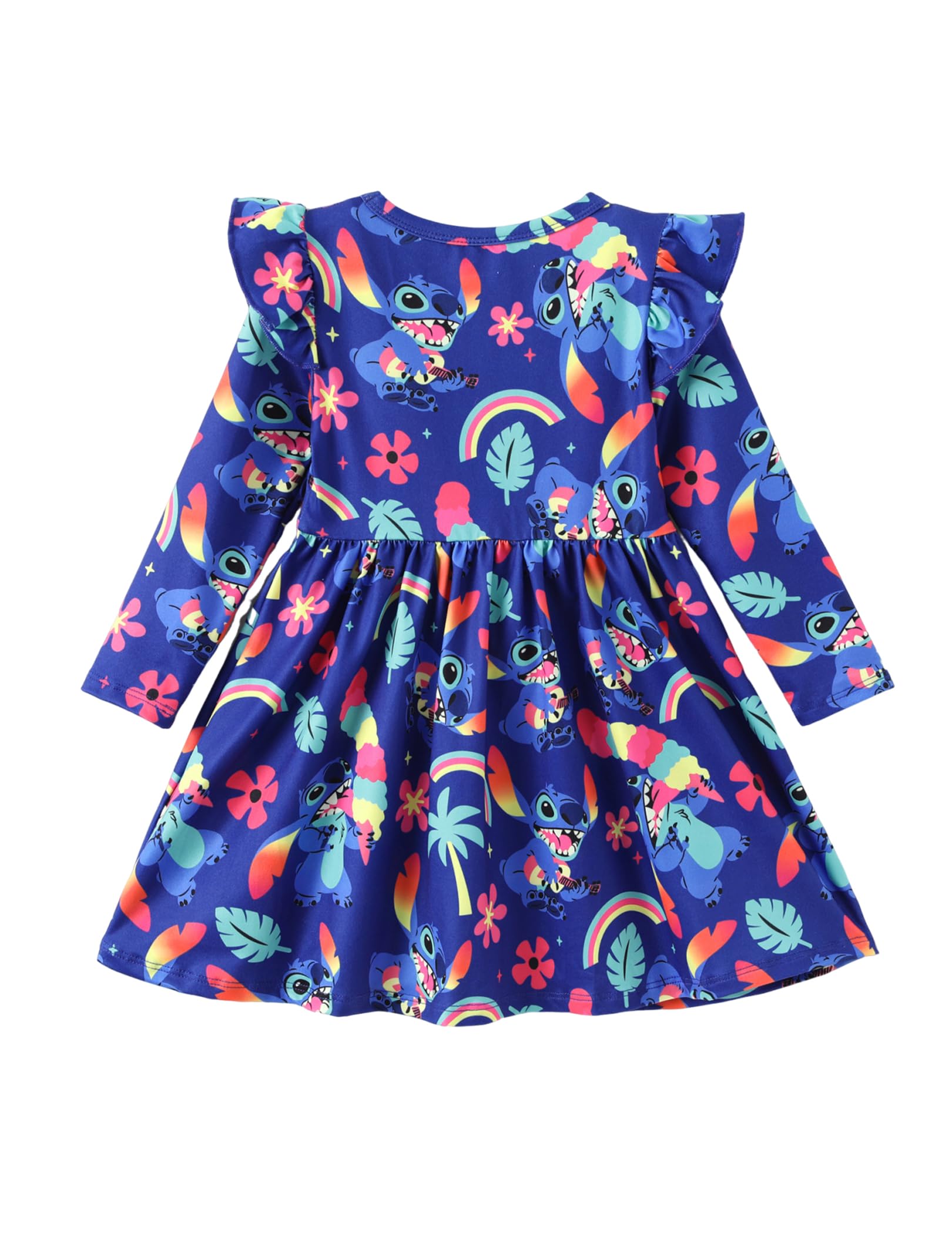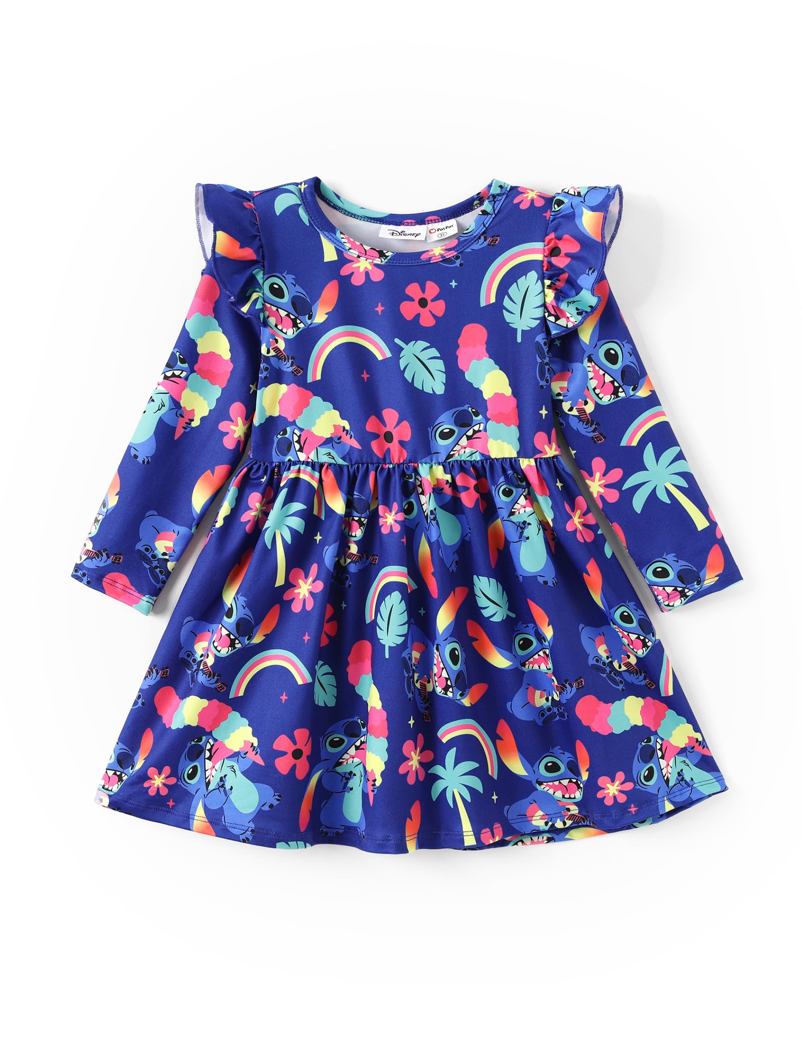 Tropical Stitch Dress for Girls: Bright, bold, and full of funβthis long-sleeve dress features Stitch from Disneyβs Lilo and Stitch surrounded by rainbows, tropical leaves, and colorful flowers. With flutter sleeves, a classic crew neck, and a twirly skirt, itβs the perfect pick for playdates, vacations, or everyday adventures with a tropical twist
