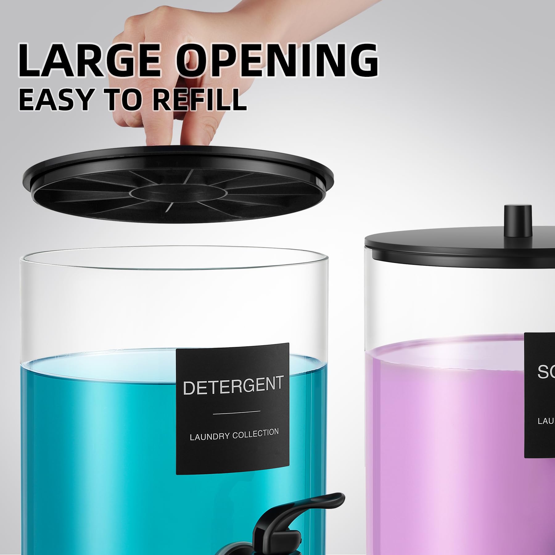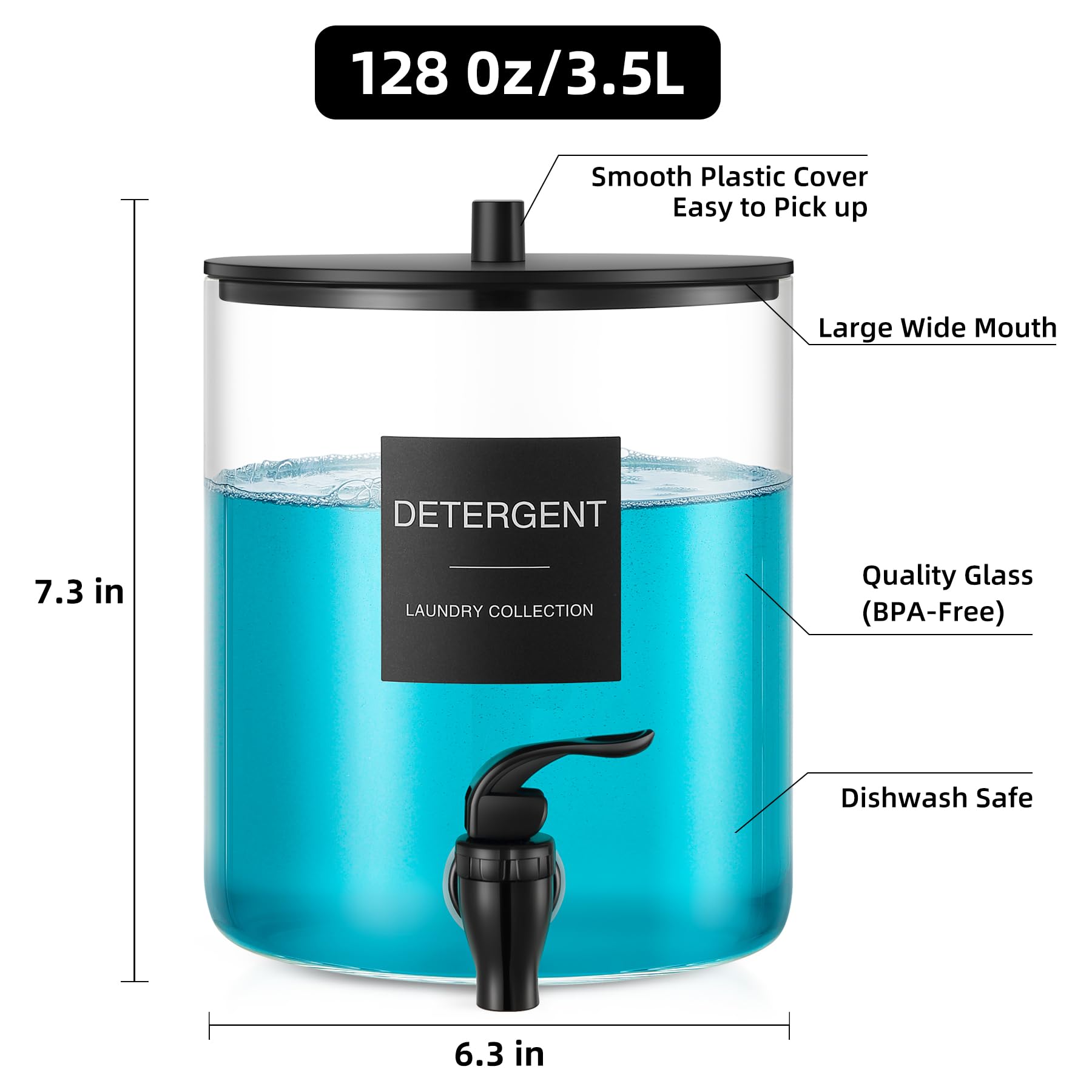 TIPGO Glass Laundry Detergent Dispenser, 128 oz / 3.5L Fabric Softener Dispenser for Laundry Room Organization
