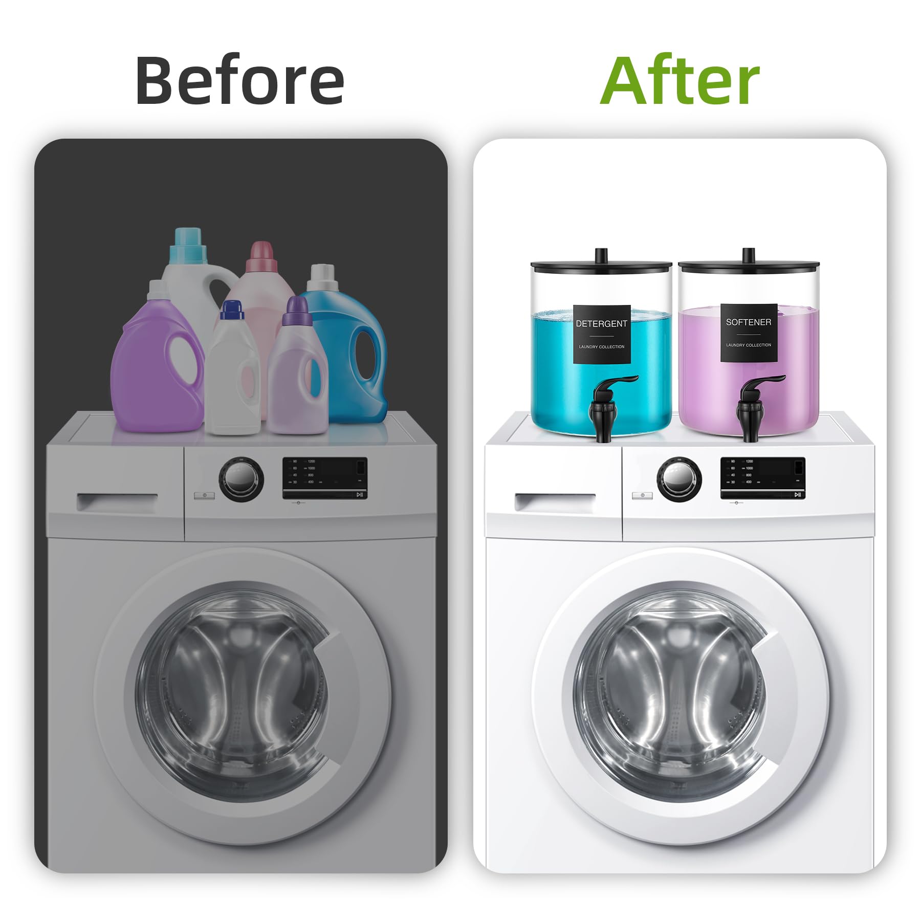 Reliable Material: Made of quality BPA-free glass with plastic Lid. Such a cute look is perfect for your laundry room organizing, keeping your laundry looking neat and elegant!