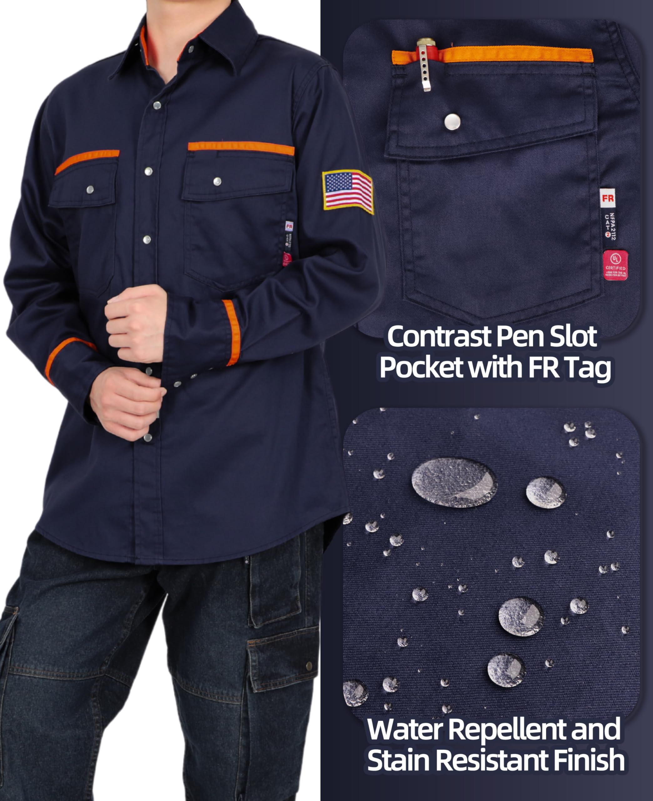 MORE USE TIME: UP TO 100 WASHES ,Our shirts has the appropriate level of protective gear and stays enforced up to numerous washes. You can wear and wash it over and over again for up to 100 times before FR still works.(NFPA2112,ASTM F1506,CAT II)