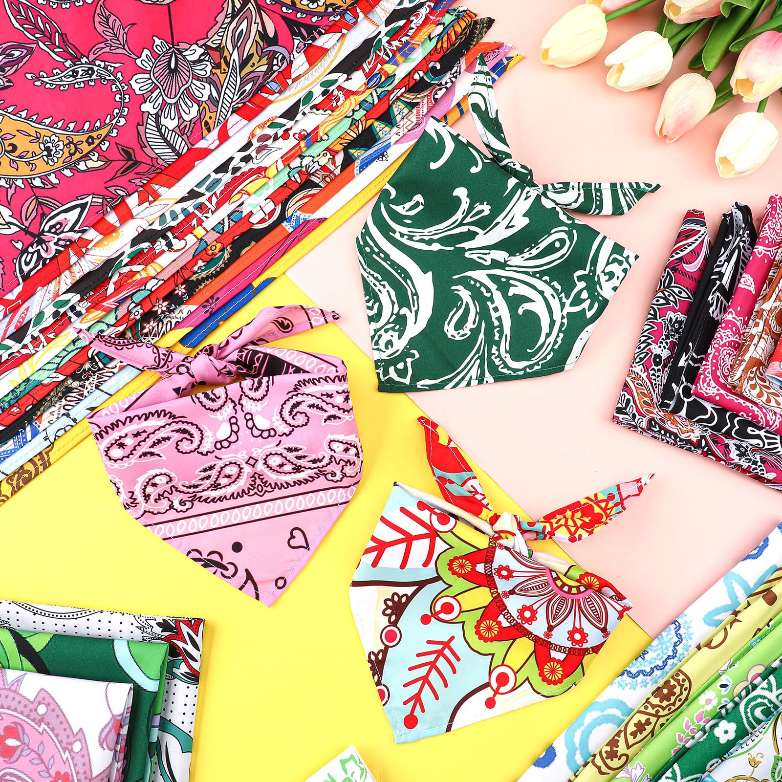 Comfortable and Breathable: these bulk paisley dog bandanas are made of polyester material, soft and safe, lightweight and breathable to wear, ensuring that your dog can stay comfortable the whole day; And with adjustable design, easy to wear, the triangle shape allows for secure and adjustable fitting, keeping the pet bandana in place during playtime or outdoor adventures