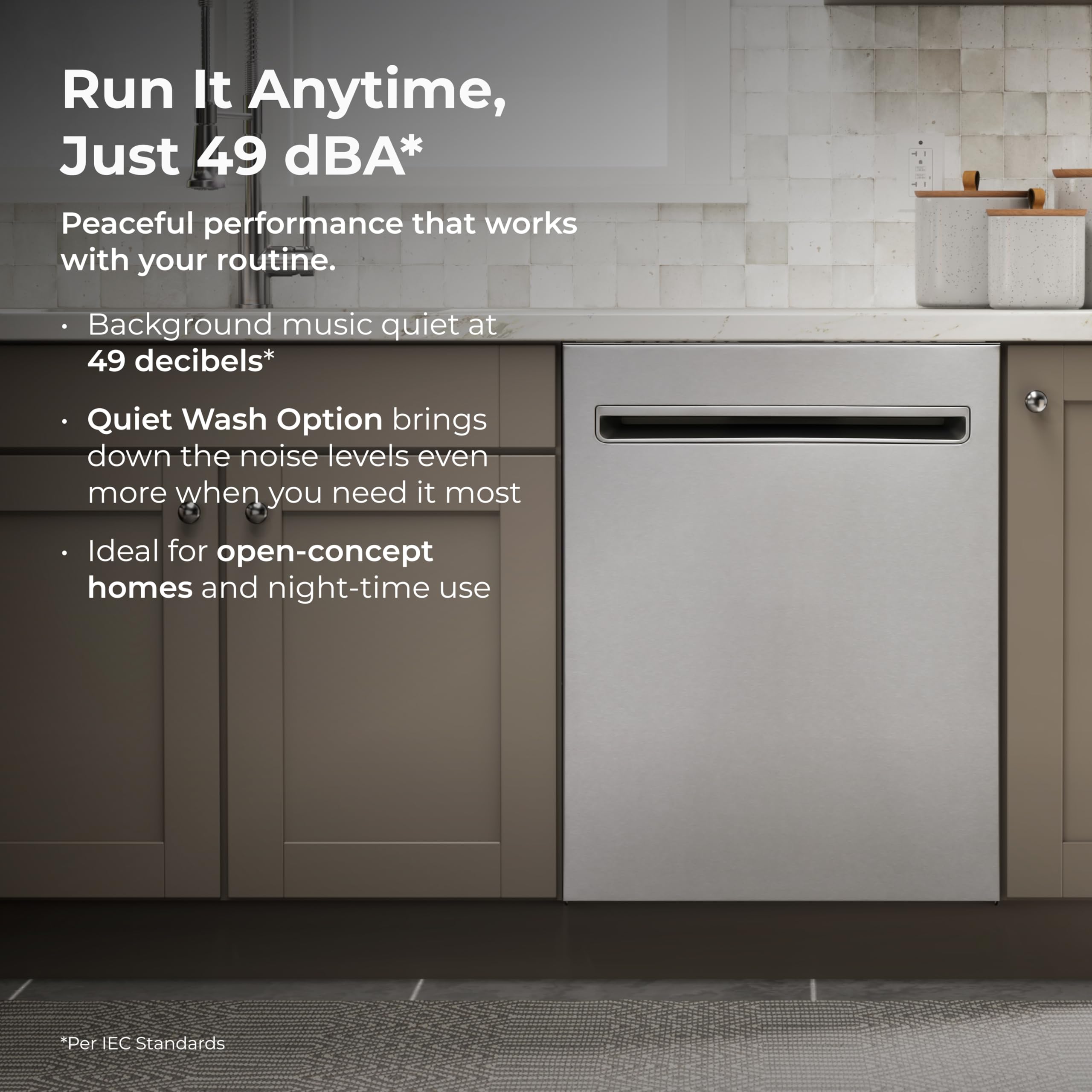 Quiet Wash + Leak Detection: This dishwasher runs at an ultra-quiet 49 dBA for minimal noise while running. Built-in Leak Detection senses and drains excess water to prevent damage before it starts