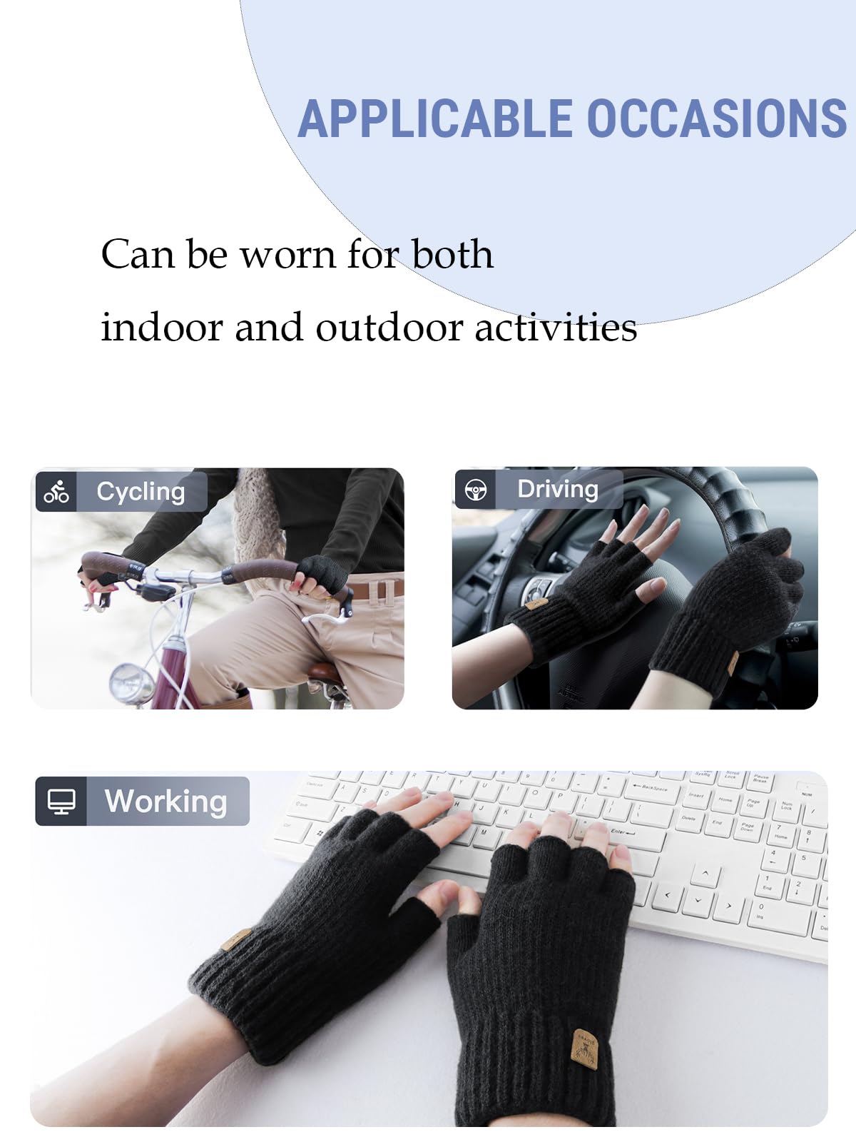 PERFECT FOR EVERYDAY USE - JUNRUI Fingerless gloves are great for everyday use as well as outdoor activities such as hiking, jogging, driving, biking, and hiking.