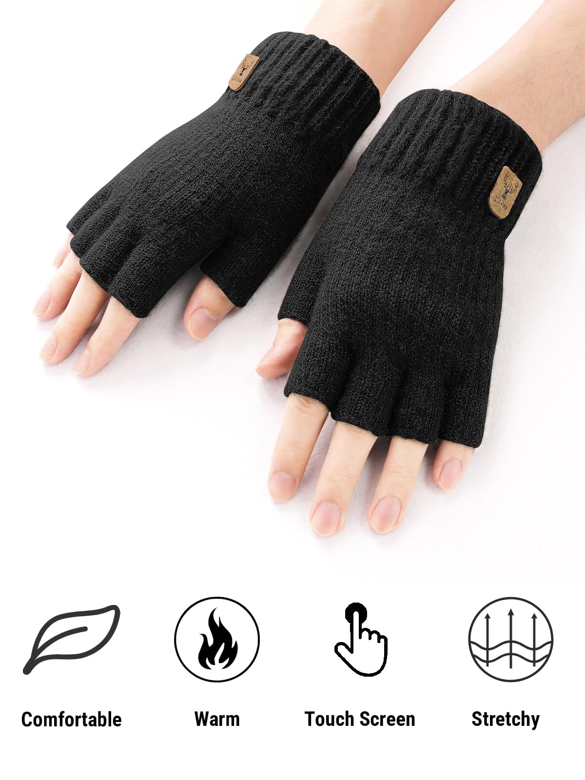 FINGERLESS DESIGN - Fingers can move flexibly when wearing half finger gloves. Keep your hands warm while using the smartphone or tablet in cold weather.