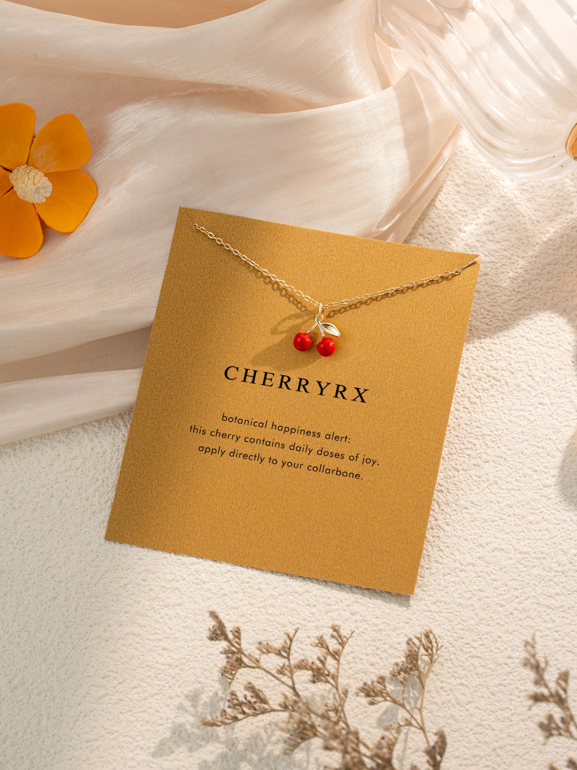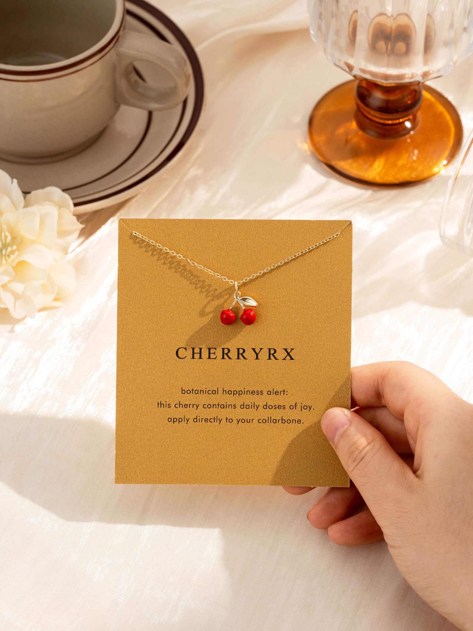 【Funny Necklace Meaning】Botanical happiness alert: This cherry contains daily doses of joy. Apply directly to your collarbone.