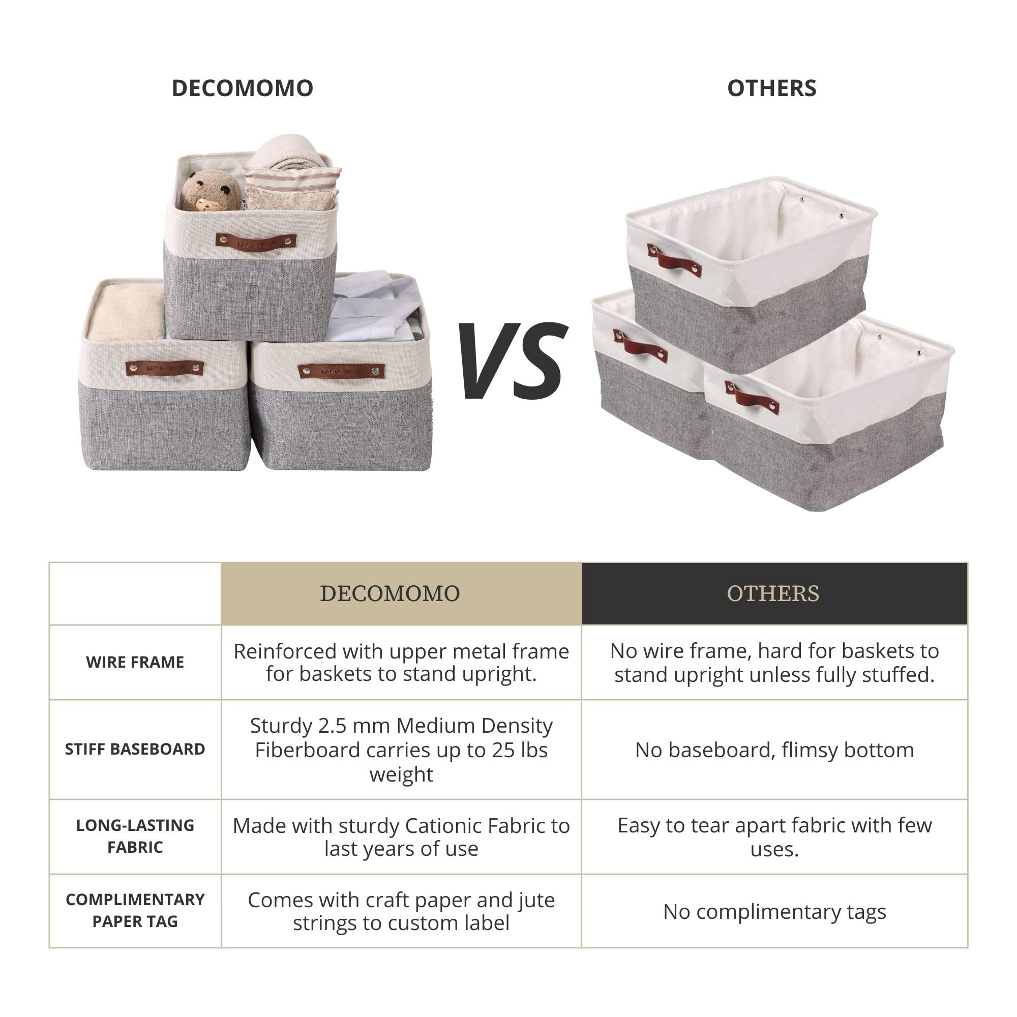 Large Storage Bin: Set of 3 for better value and shopping convenience. Dimensions (each): 15β (L) x 11β (W) x 9.5β (H) / (38cm x 28 cm x 24 cm). DECOMOMO's decorative storage boxes can be used in bedrooms, living rooms, kitchens, offices, closets, and cabinets.