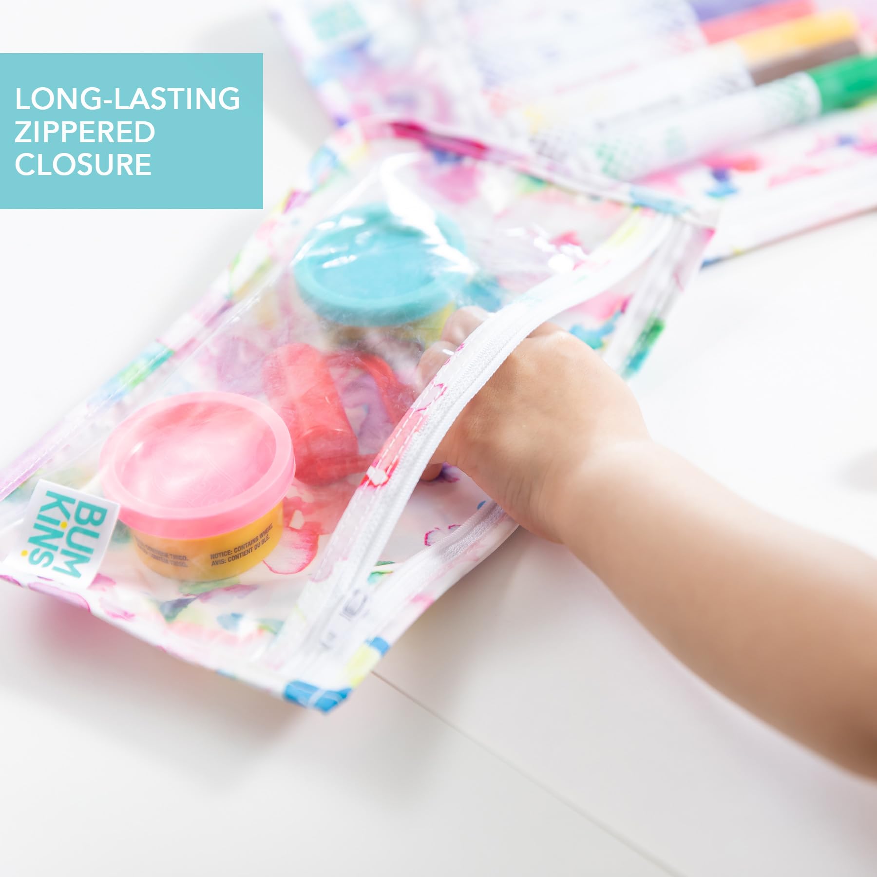The better alternative to single-use plastic bags to keep things organized, our clear-sided 3-pack reusable travel pouches are TSA compliant, making it easy to go from your day-to-day and then through security. Not just for airplane travel – these travel bags make excellent organizers for toys, accessories, cosmetics, electronics, and more. Pack and stash inside your purse, travel bag, diaper bag, tote bag or backpack. The bags are lightweight and lay flat, so when traveling they take up less space when empty than other containers and cubes. With a strong and durable zipper closure, our bags keep your items secure.Bumkins uses third party labs to ensure the products we manufacture comply with CPSC and CPSIA standards for BPA, Lead, and Phthalates. The set includes 3 sizes: large: 9.5in x 8.5in; medium: 9in x 7in; small: 9in x 5in. Meets TSA requirement for size limit of 1 quart-sized bag (57.8 cubic inches). For over 30 years, Bumkins has been creating thoughtful and responsibly made essentials for babies and kids, making parenting easier so families can cherish those special moments. Designed in Arizona, responsibly made in China.