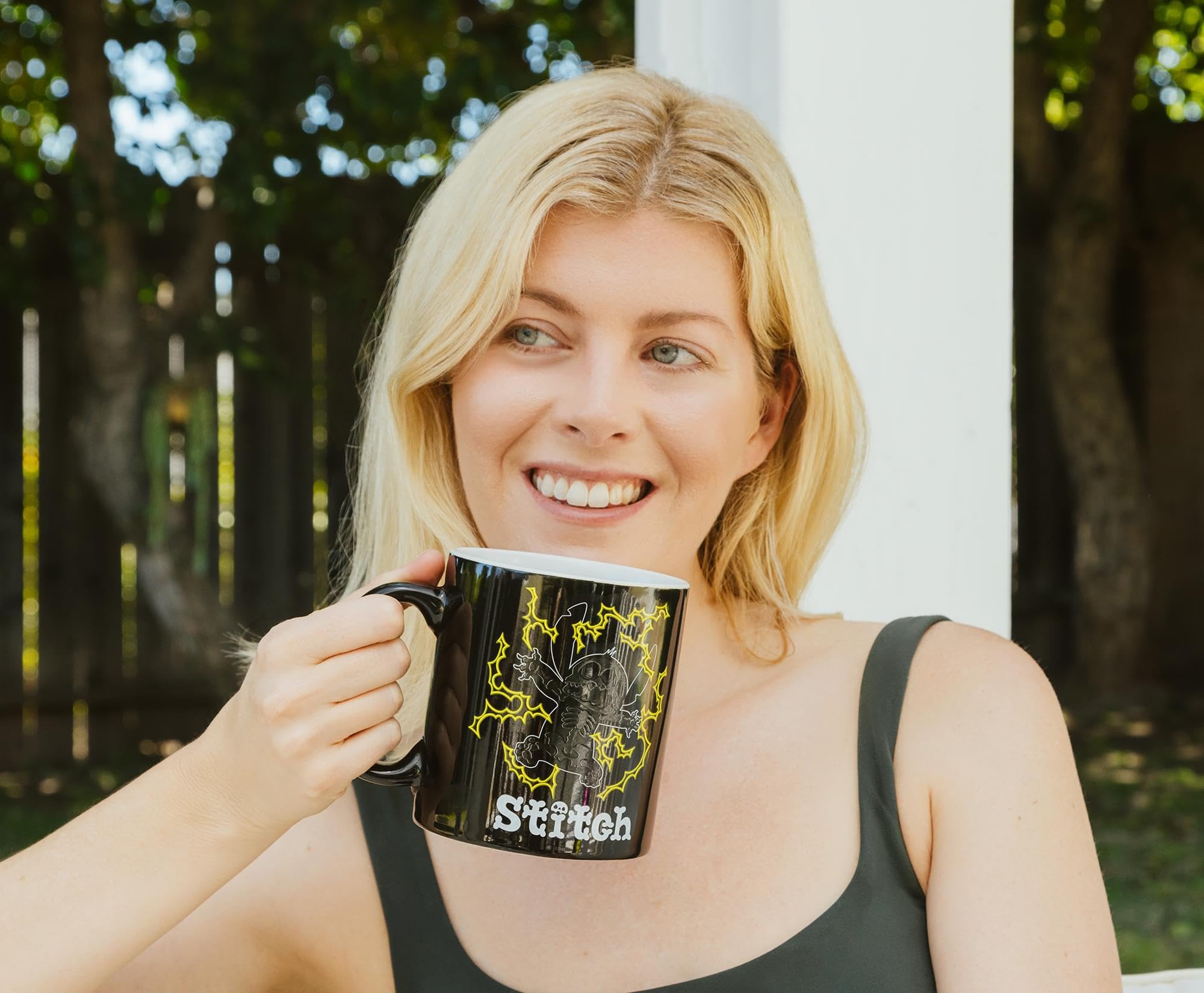 GLOW-IN-THE-DARK DESIGN: Enjoy your beverages in this 20oz ceramic mug featuring Stitch surrounded by electrifying shock bolts that glow in the dark. Perfect for fans of Lilo & Stitch!
