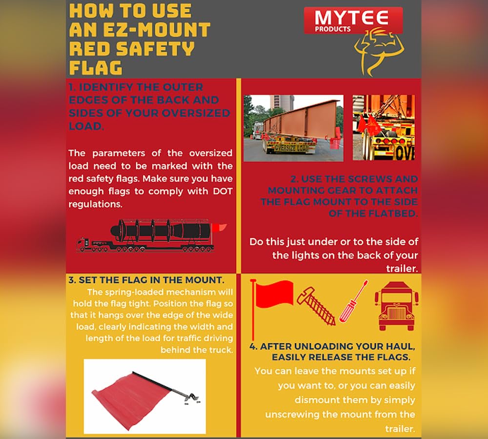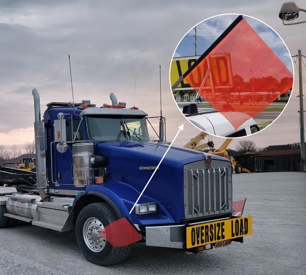 ✔ DOT COMPLIANT. Follow the law! The Department of Transportation mandates that red-orange safety flags mark every oversize load.