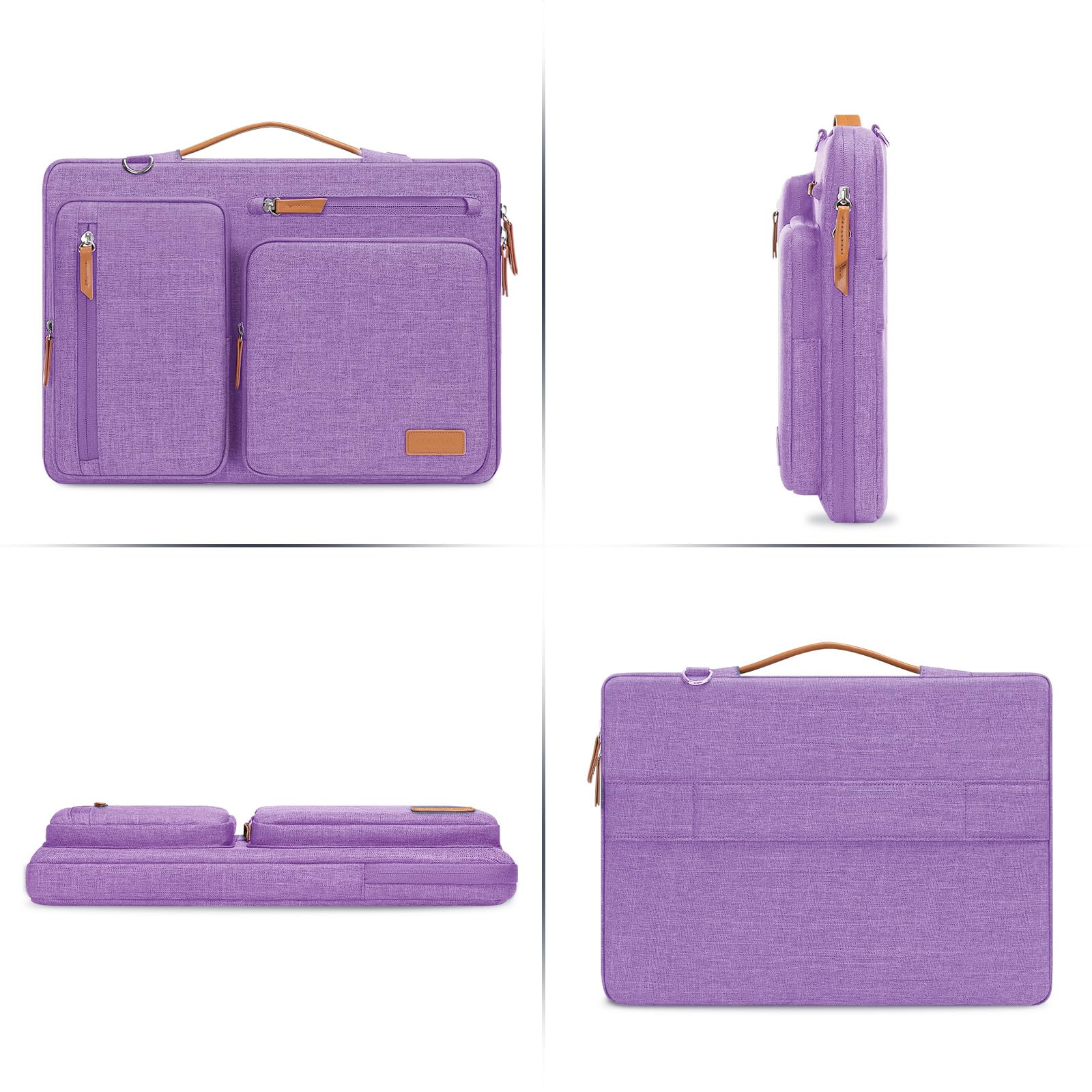 The Laptop Sleeve Bag with Handle & Adjustable Shouler Strap. Removable and adjustable padding shoulder strap with a shoulder pad varied from 28.54 inch to maximum 52.56 inch. You can use it as shoulder bag, laptop carrying case, sleeve bag, handle bag, messenger bag, crossbody bag and briefcase in whatever way you like. Extendable PU handle design makes it to carry your laptop around in comfort, you can also tuck away the handle