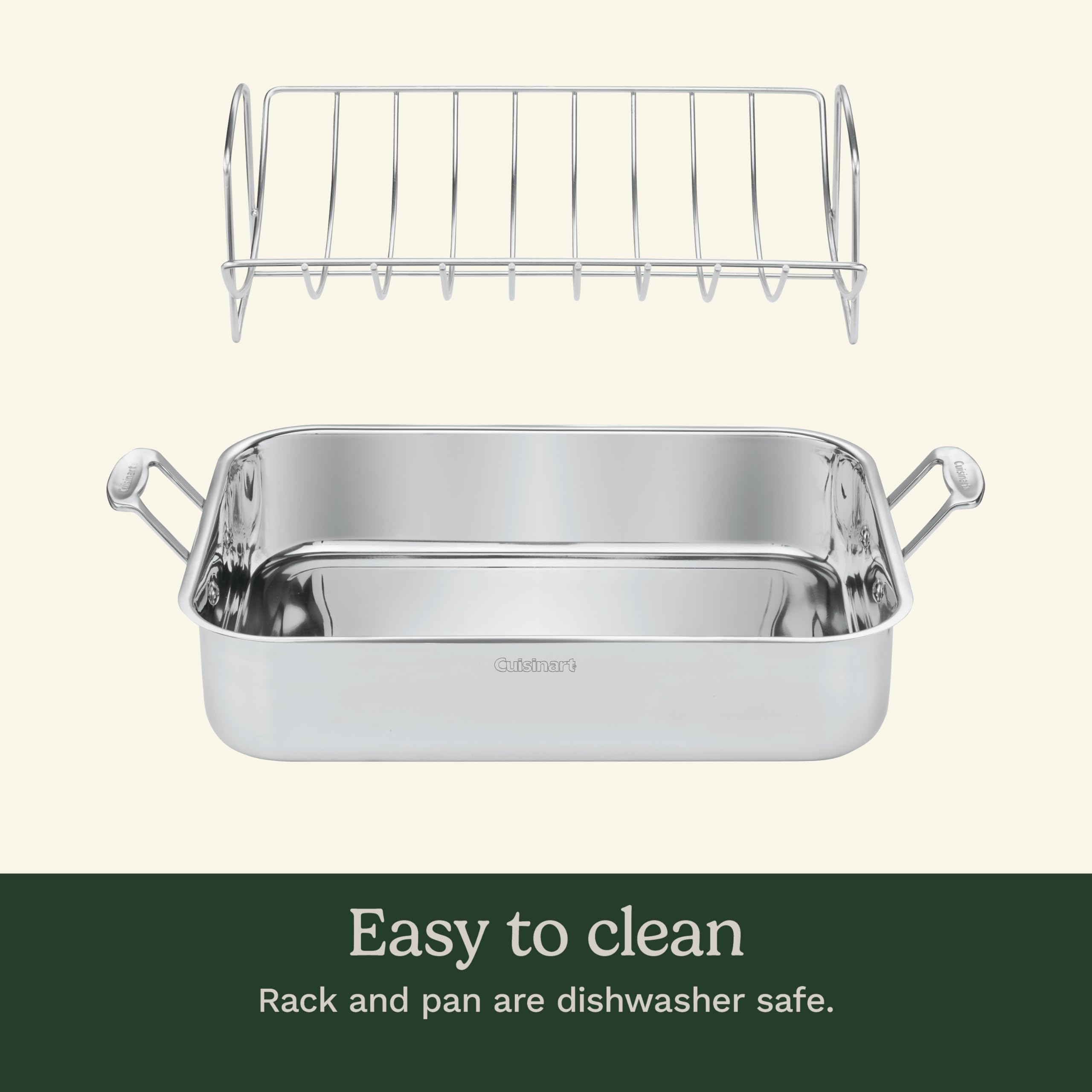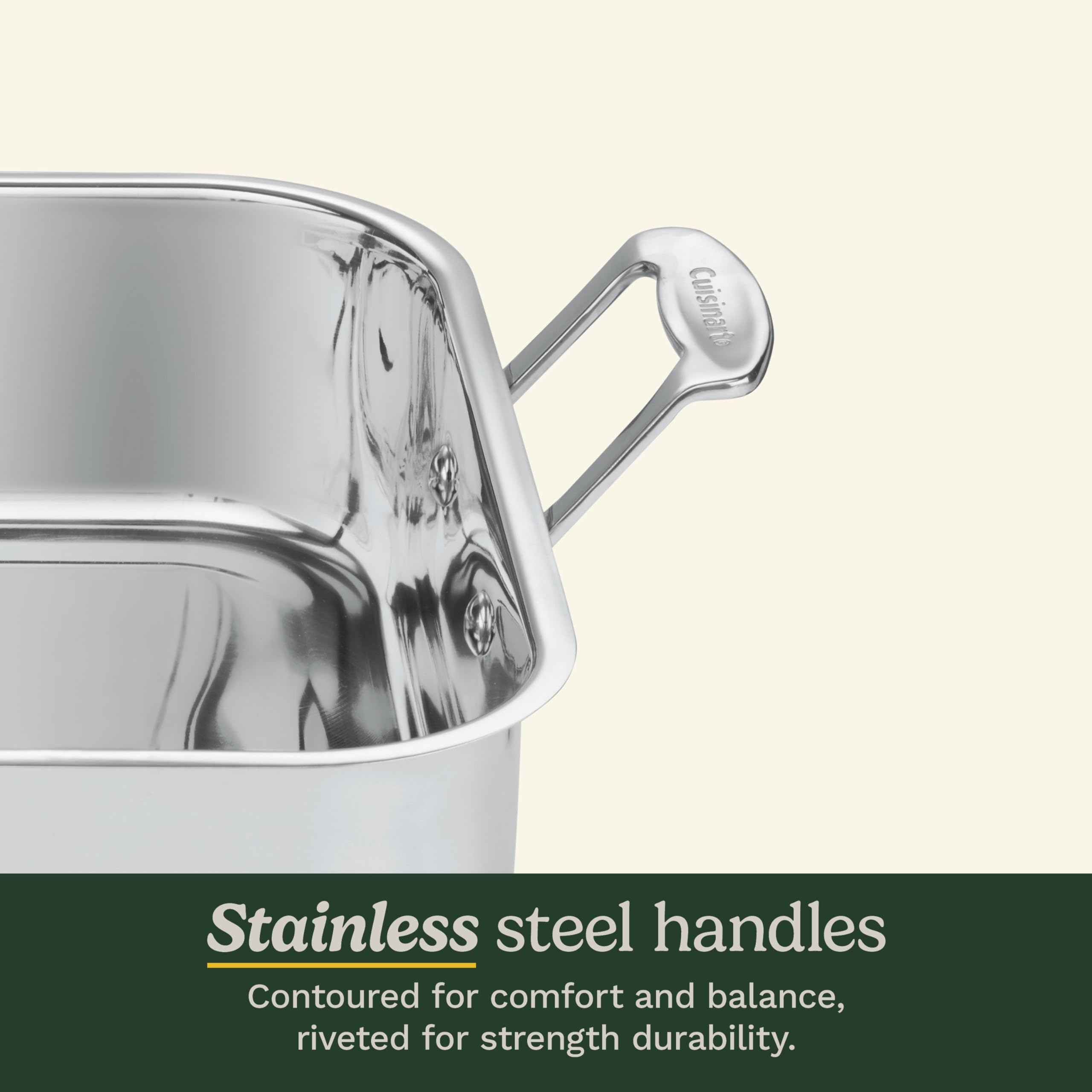 EXCEPTIONAL DESIGN: The Cuisinart 16-inch rectangular roaster is made with a high-performance stainless steel exterior and riveted stainless steel handles. The steel rack is large enough to handle a big Thanksgiving turkey and perfect for slow-roasting root vegetables
