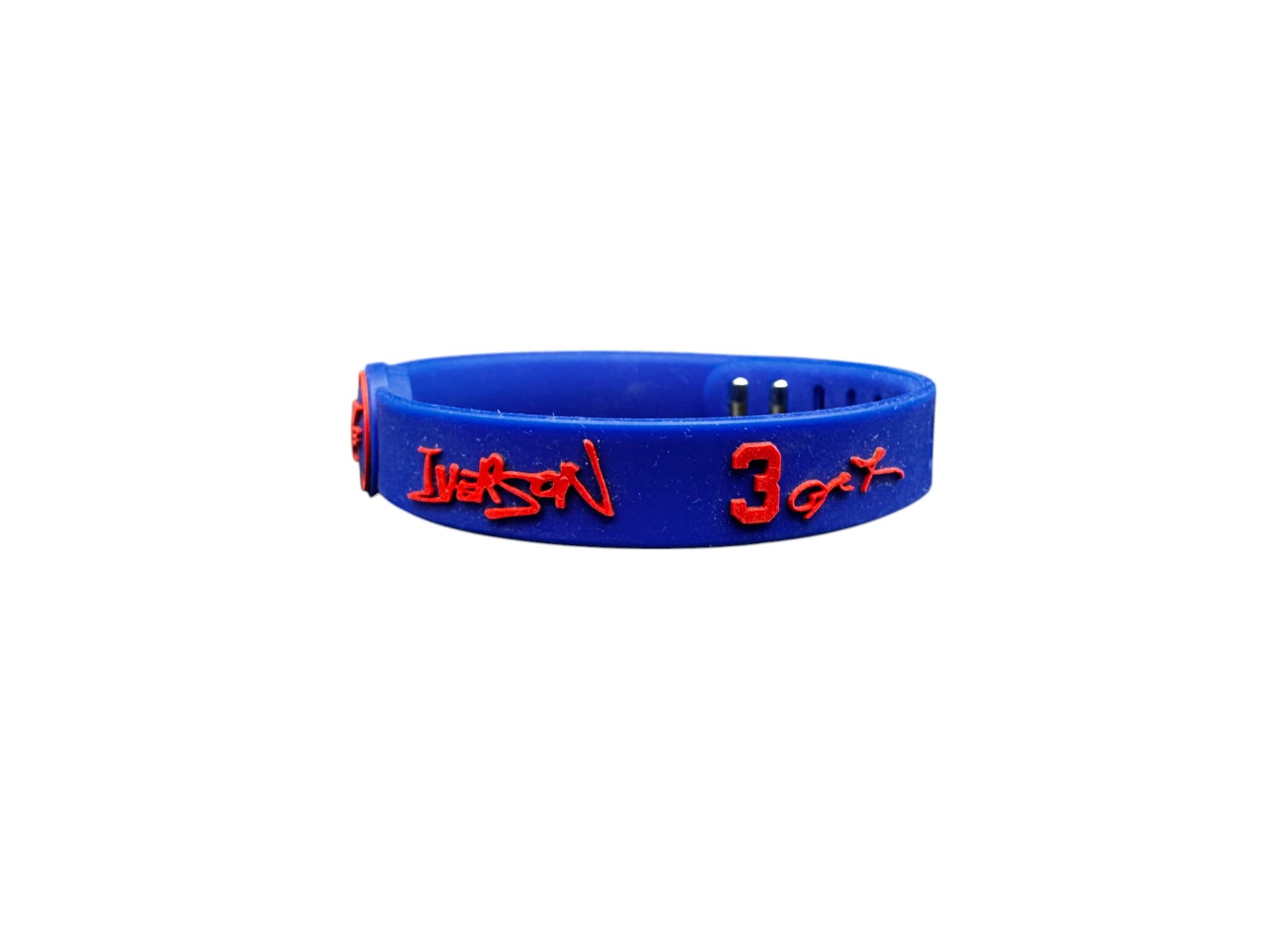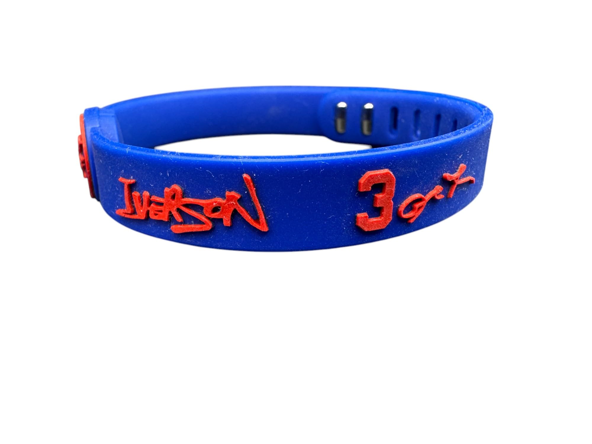 ALLEN IVERSON LEGACY — Embossed I3 crest, bold #3, “The Answer” and “Bubba Chuck” nicknames pack MVP swagger, killer crossovers, fearless drives, All-Star flair, ankle-breaker highlights, Sixers hero status and Hall-of-Fame inspiration into one standout bracelet.