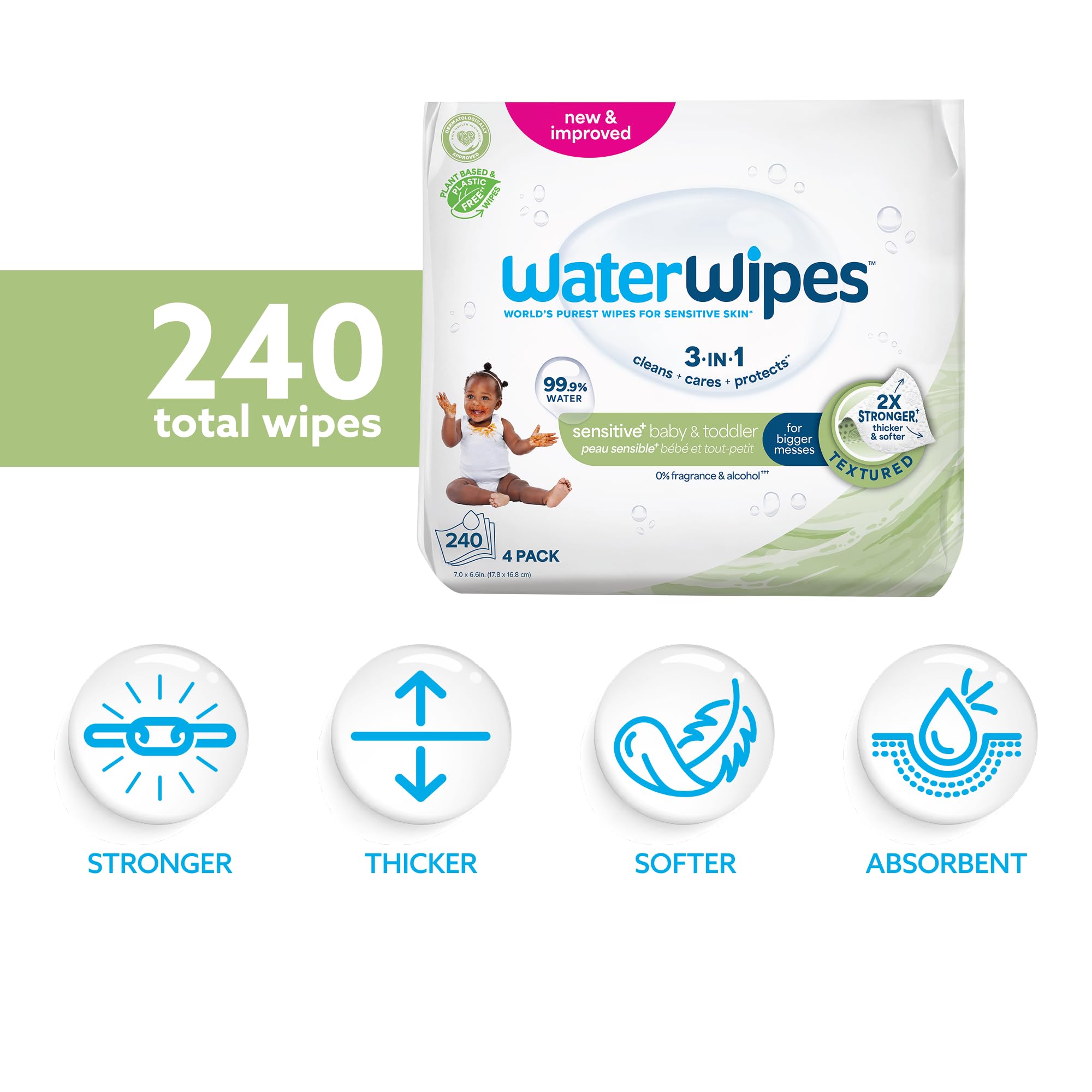2X STRONGER: Upgraded for more versatility, WaterWipes are now thicker, softer & 2x stronger with a textured surface to tackle tougher messes while keeping the same, trusted purity.