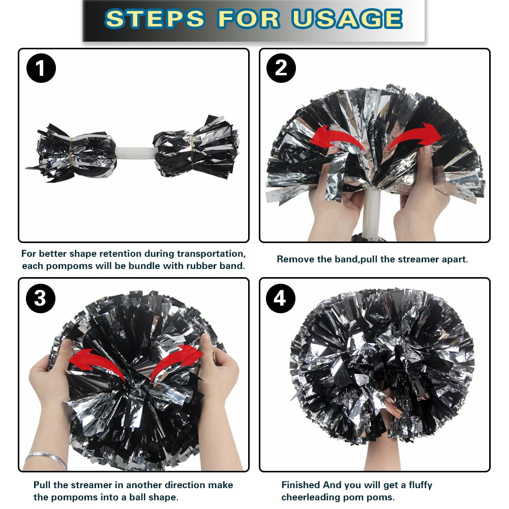 Instructions For Use - When you first use the cheerleader pom poms, please knead it fully to expand its streamers. You need to use your fingers to pull the streamers apart, after several time of use, the pompoms will become more fluffy.