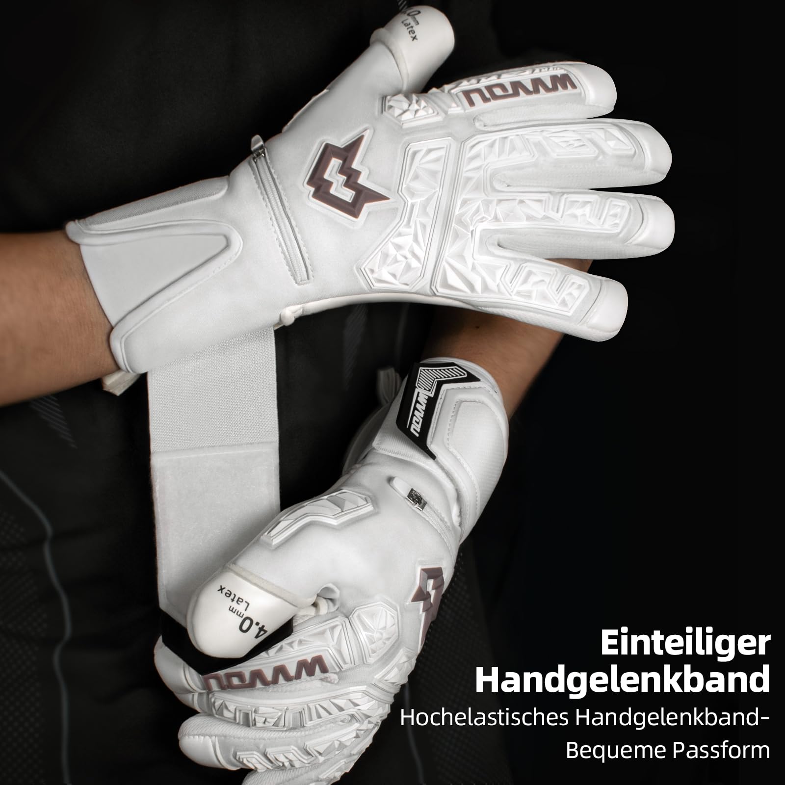 4+3MM STICKY LATEX: The goalie gloves are made of 4+3mm sticky latex, which is full of stickiness and strong wear resistance, creating incredible grip strength and ball control in any weather.