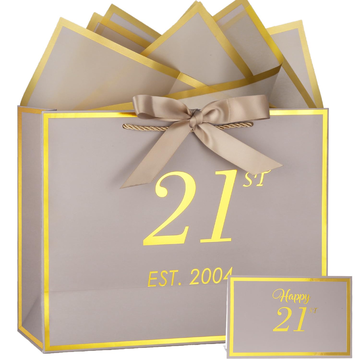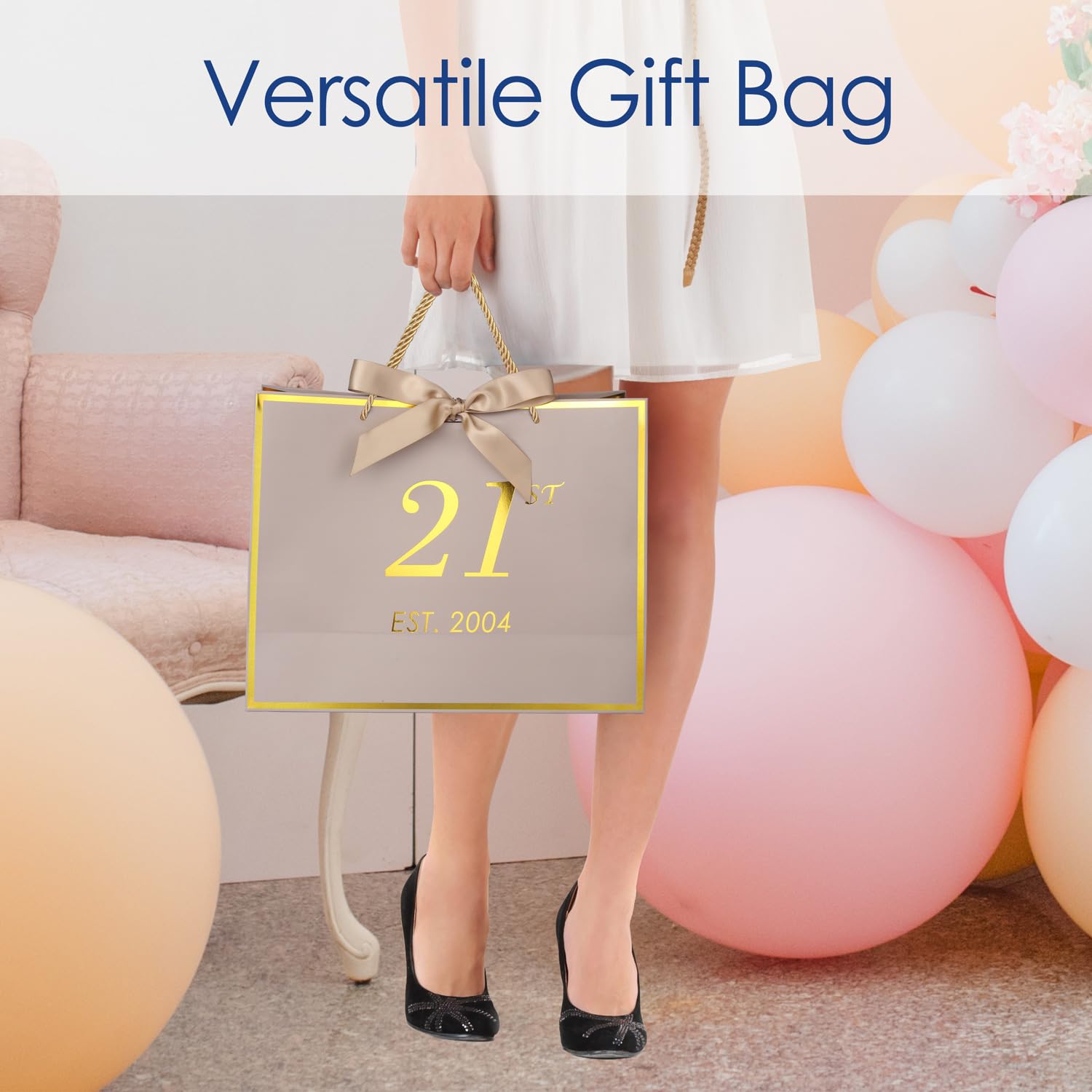 21st Birthday Gift Bag: Make every gift a memorable one with our elegant bow birthday gift bag. This gift bag is made from durable, premium paper to ensure the gift bags can hold various items securely, complemented by 1 elegant greeting card and 2 water proof tissue papers and 1 ribbon, providing a flawless wrapping experience.