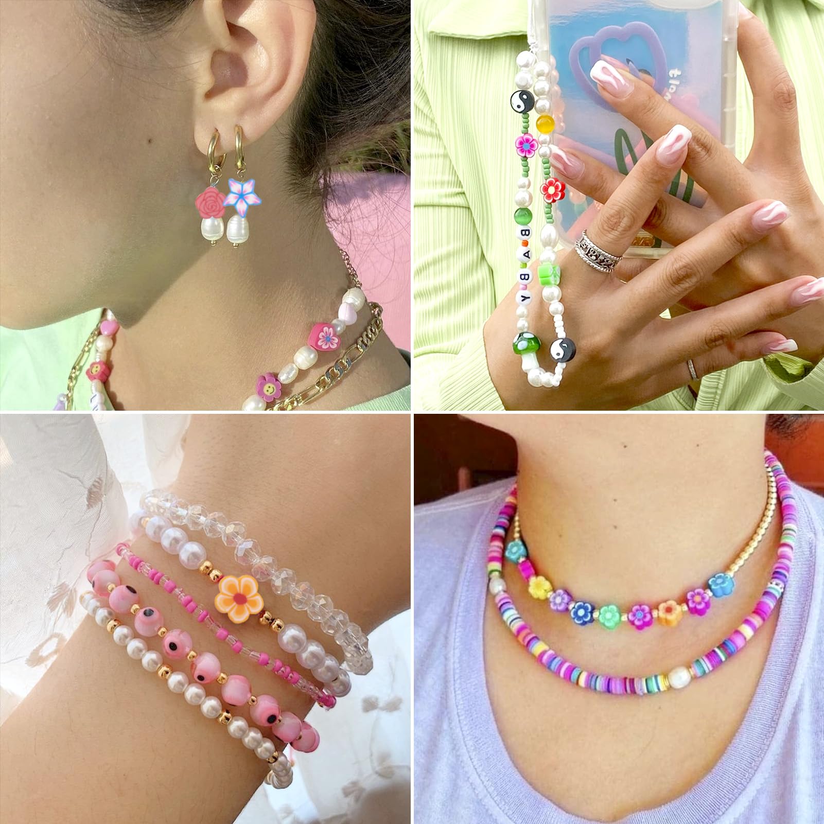 【Wide Application】These polymer clay beads are perfect for making beading necklace, bracelet, earring, keychain, or other jewelry and crafts.