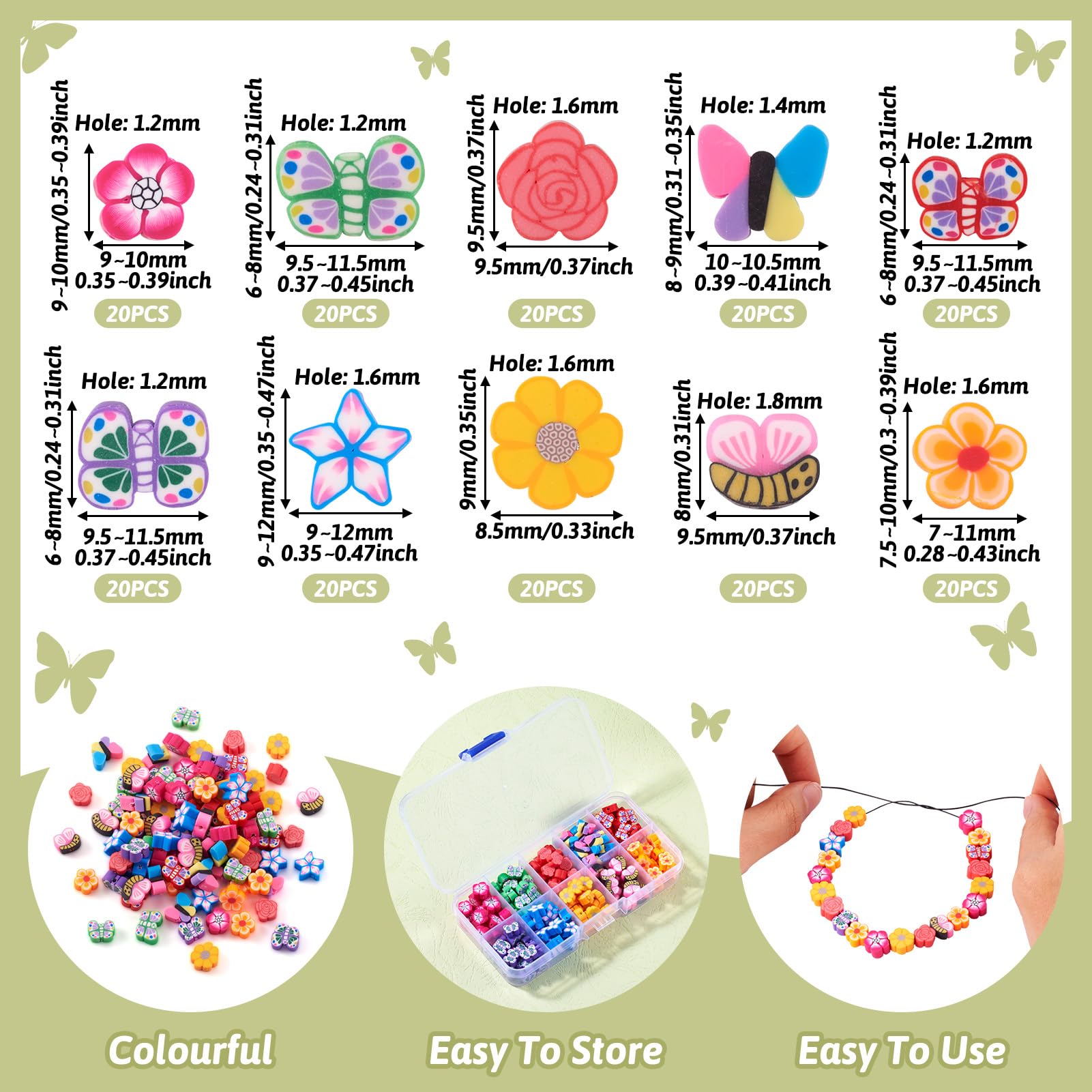 【Spring Theme】These clay beads have different flower and butterfly patterns, suitable for spring theme. Mixed styles will satisfy your various decorating needs.