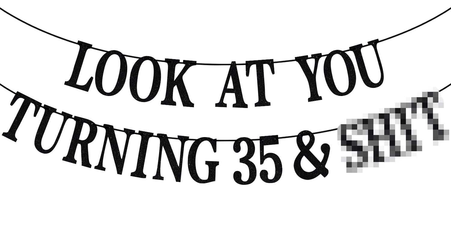 Received included: Letter cards spelling the phrase "Look at You Turning 35 & Sh*t". Awesome decorations: It is very suitable for the 35th Birthday party. Special party decorations can add an enjoyable and active atmosphere to these scenes, leaving a happy and unforgettable memory. High quality: Banners are made of glitter premium cardpaper. They are rigid and reusable. Easy to DIY: The card and the rope are separate, you only need to spend a little time to assemble. Choose us and believe us: We support the concept of customer first and product first. If the quality or damage occurs during transportation, we will solve it.
