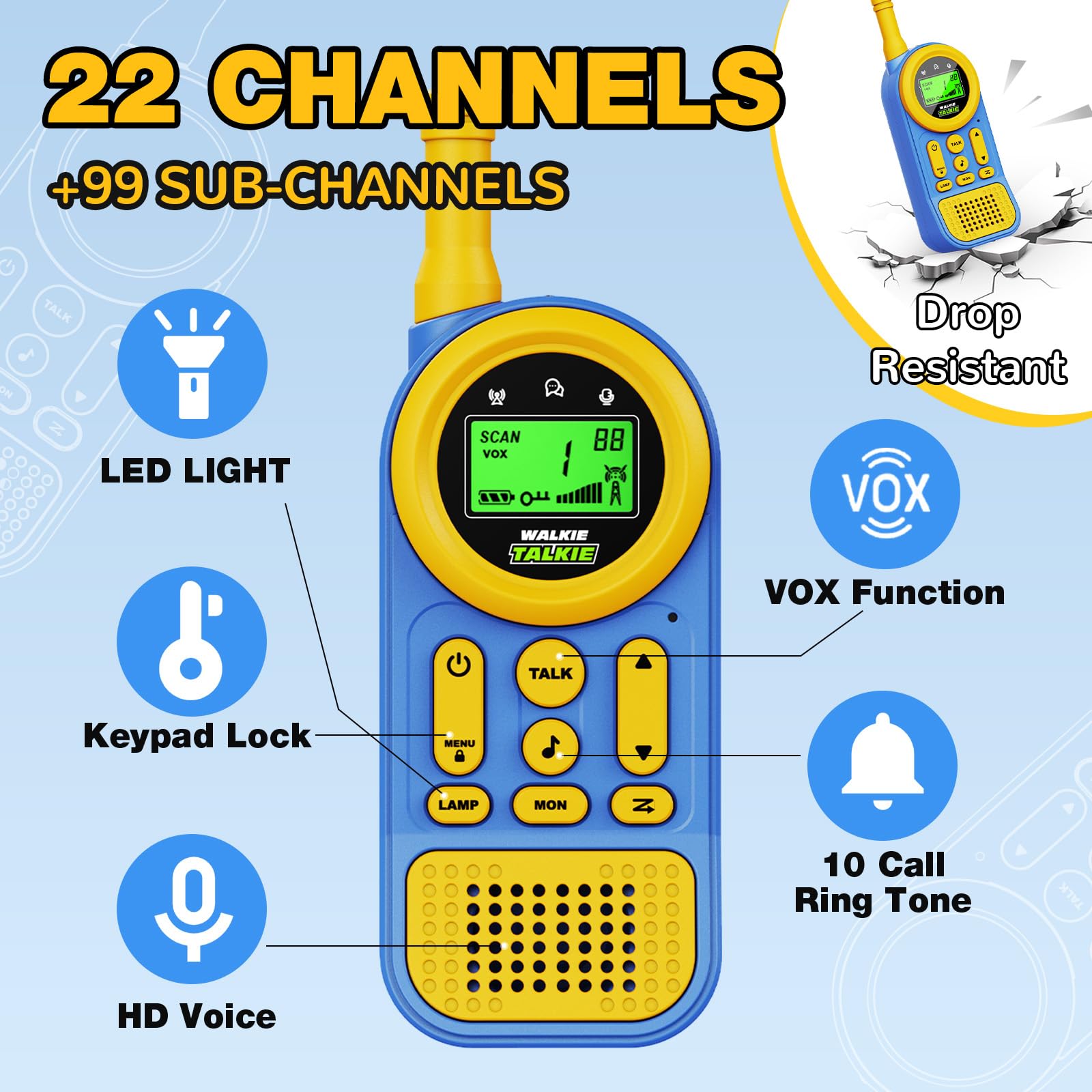 Cool Features For Clear Chat: Enjoy crisp sound and adjustable volume with cool call alerts. The key lock prevents accidental setting changes, making interaction smooth. Its modern design makes walkie talkies for kids a stellar gift