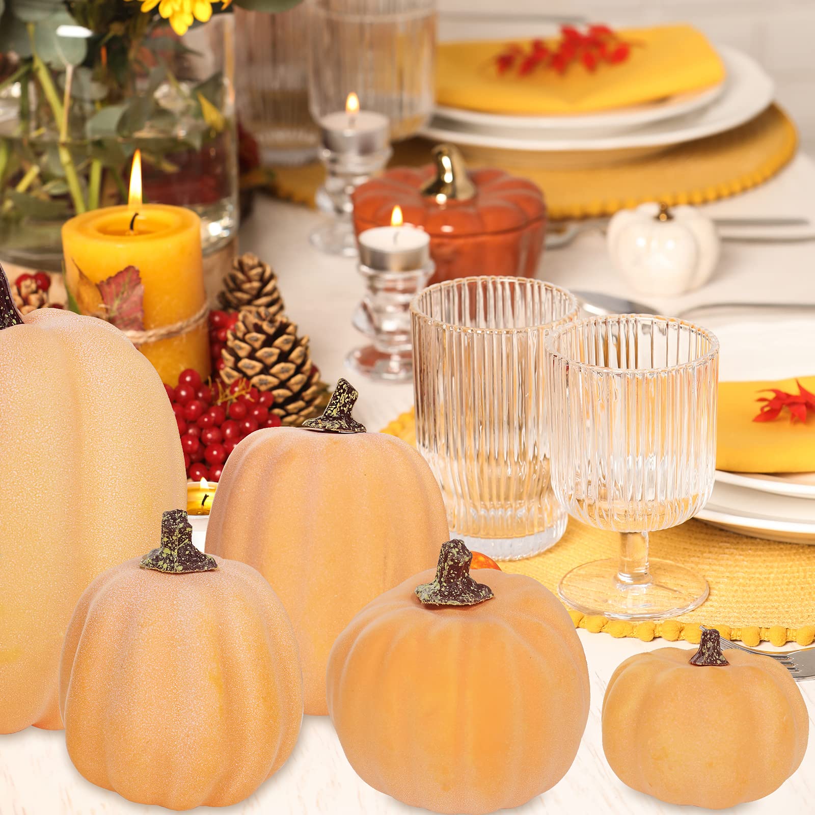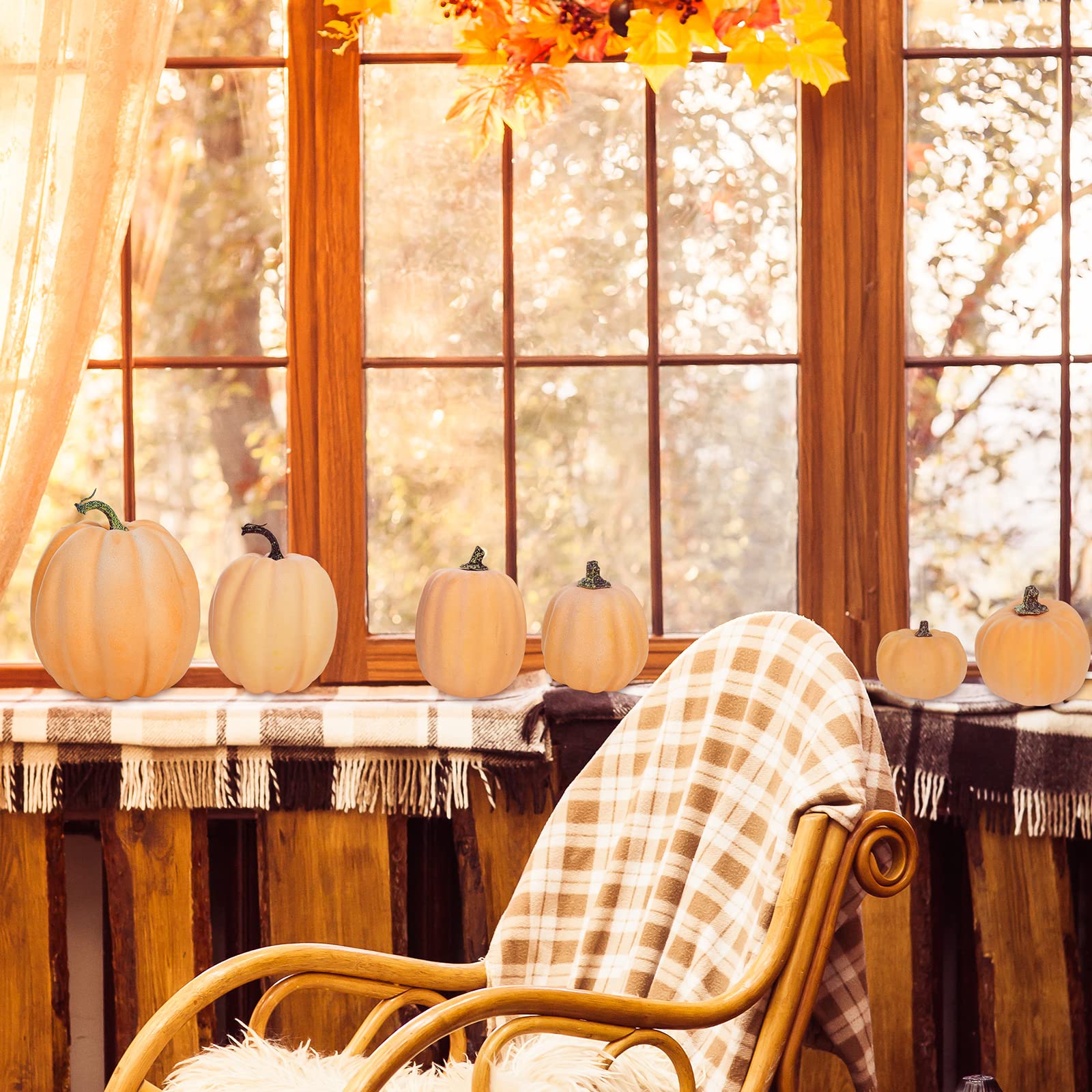 Size: Set of 7 fall faux pumpkins measures about 2.8"-5.7" wide and 3"-6.9" tall. In a mix of sizes, these decorative pumpkins are perfect for using in a variety of decor projects. They can be used for fall centerpieces, floral arrangements, fall wreaths, garland, swags, bowl display, tiered tray decor, and so on. These lovely foam pumpkins look great on their own, but you can also use them along with other seasonal pieces to create a fun and festive display on a table or mantel.